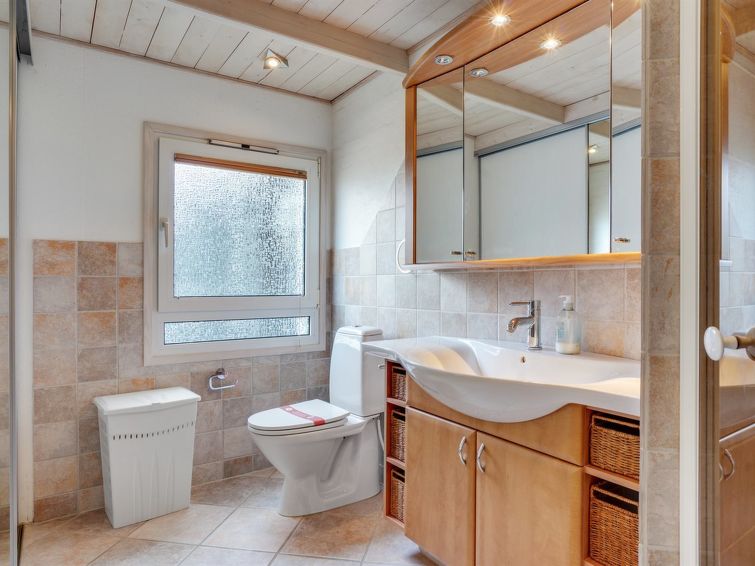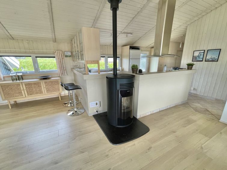 "Alfhild" - 250m from the sea in NW Jutland", 4 rom hus 143 m2. Passer for 8 voksne + 1 barn. Stue med, TV og radio. 1 rom med, 1 dobbeltseng. 1 rom med, 1 dobbeltseng. 1 rom med 2 senger og 1 dobbeltseng. 1 rom med 2 senger. Kjøkken (stekeovn, oppvaskmaskin, 4 keramiske kokeplater, mikrobølgeovn, frys). 2 dusjer/WC, boblebad. Terrasse 10 m2, dekt. Fasiliteter: høy barnestol barneseng (ekstra). Internett (trådløs LAN [WLAN]). Vennligst merk: røykfri bolig. Max kjæledyr / hund tillatt 1 kjæledyr / hund tillatt.