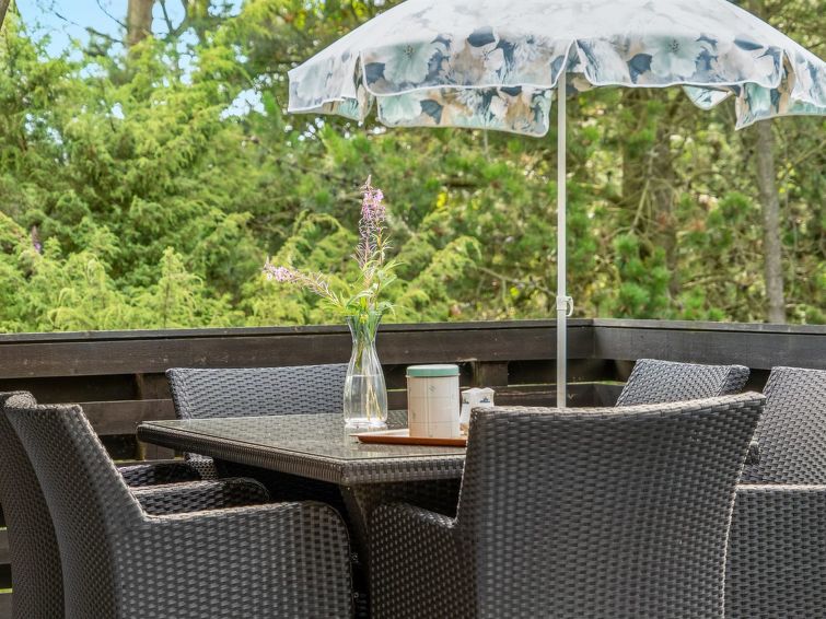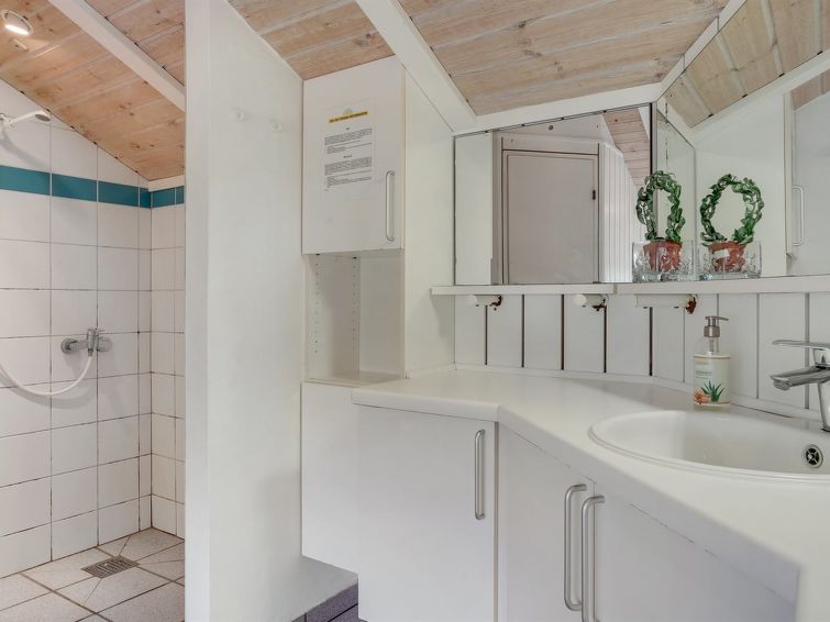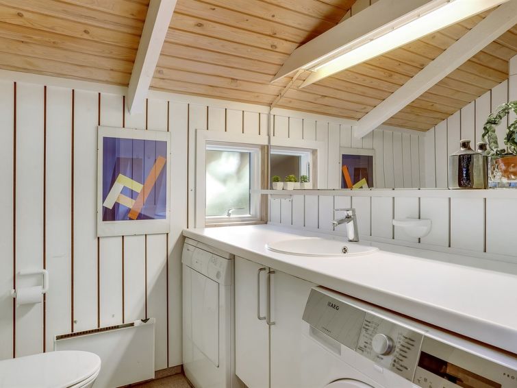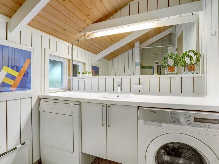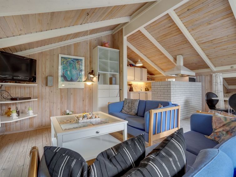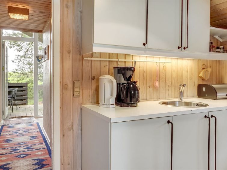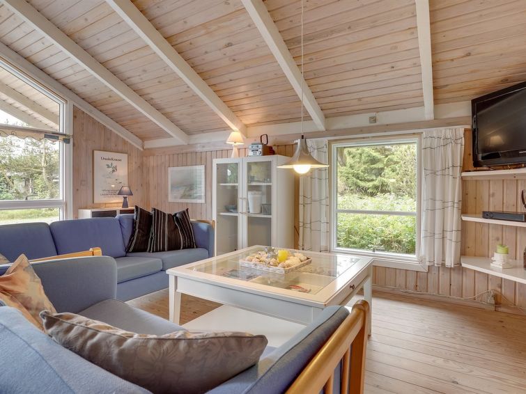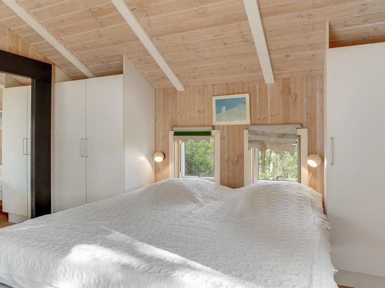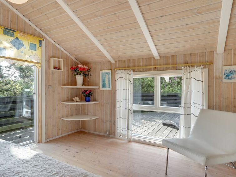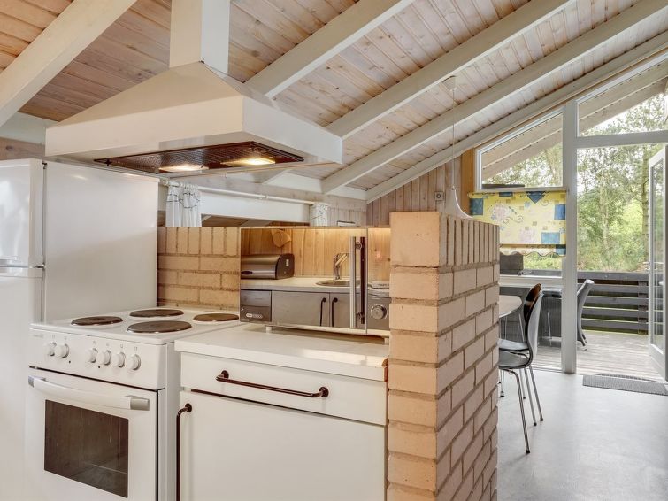 "Alfi" - 150m from the sea in NE Jutland", 3 rom hus 110 m2. Passer for 6 voksne + 1 barn. Stue med, TV og radio. 1 rom med, 1 dobbeltseng. 1 rom med, 1 x 2 køysenger. 1 rom med, 1 dobbeltseng. Kjøkken (4 kokeplater, stekeovn, oppvaskmaskin). Dusj/WC. Terrasse 12 m2, dekt. Fasiliteter: barneseng (ekstra). Internett (trådløs LAN [WLAN]). Max kjæledyr / hund tillatt 1 kjæledyr / hund tillatt.