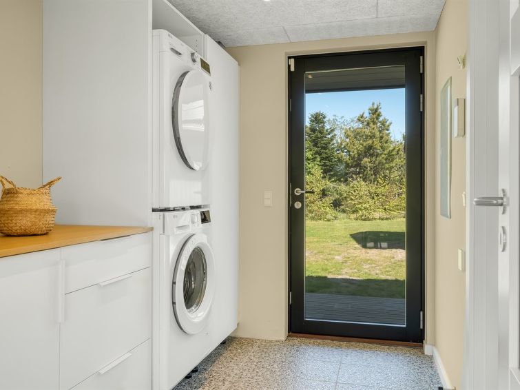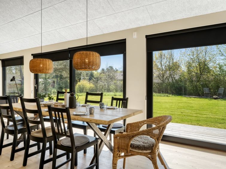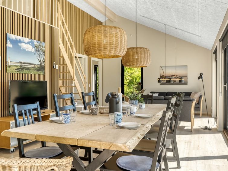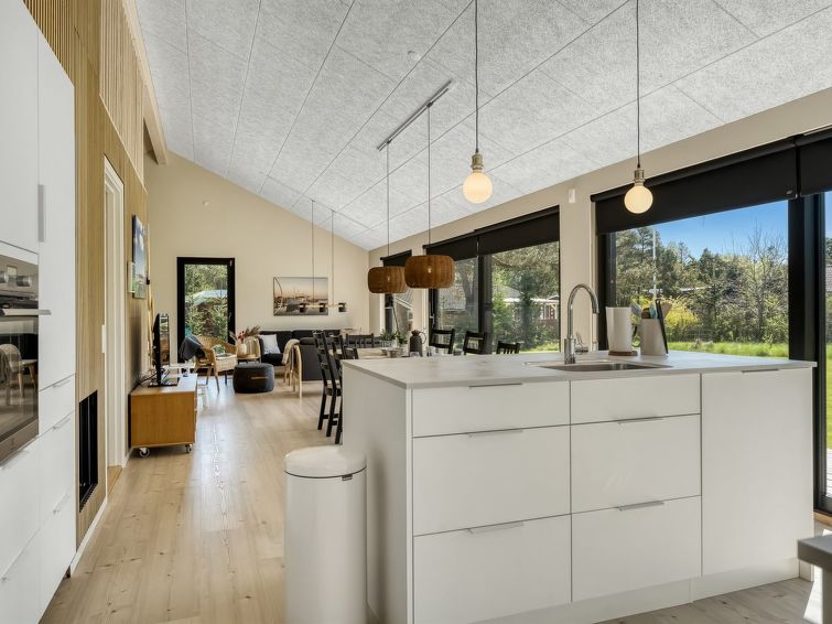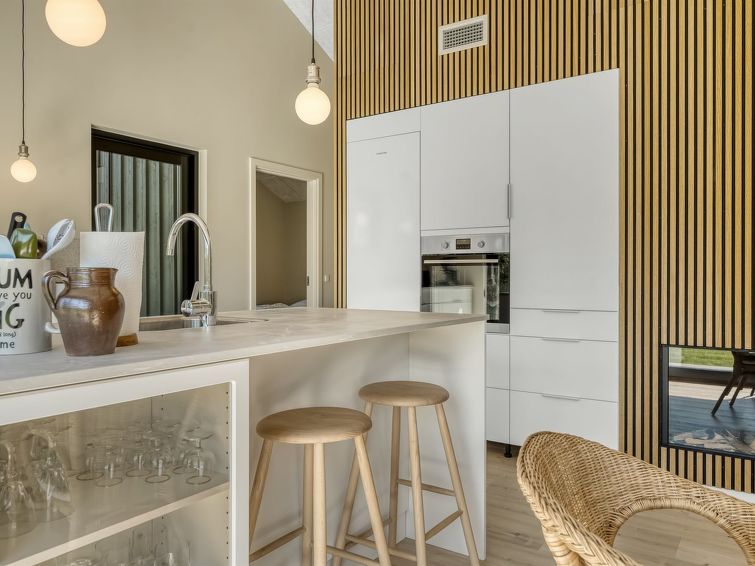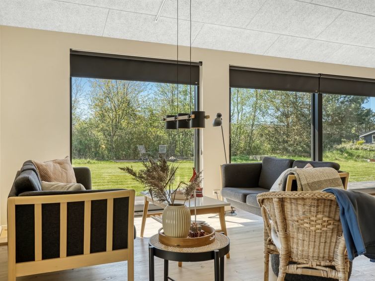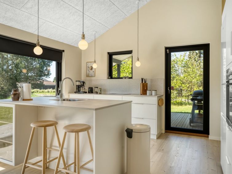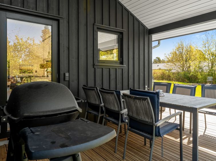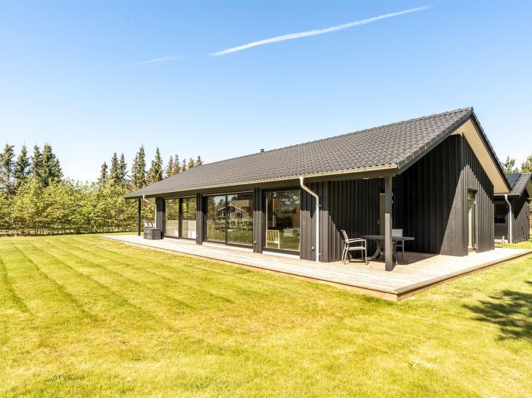 Enmannsbolig, bygget i 2023. 600 m fra sjøen. Privat: uberørt tomt 1'265 m2, velholdt hage. Grill, lekeplass. I huset: vaskemaskin, tørketrommel. Parkering ved hbrukt. El-ladestasjon. Daglivarehandel 1.5 km. Golfbane 730 m. Eieren godtar ikke noen ungdomsgrupper.