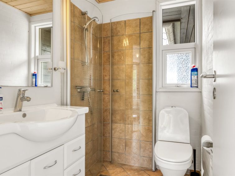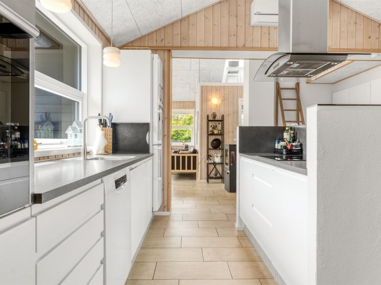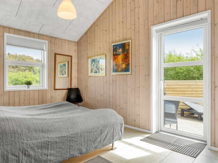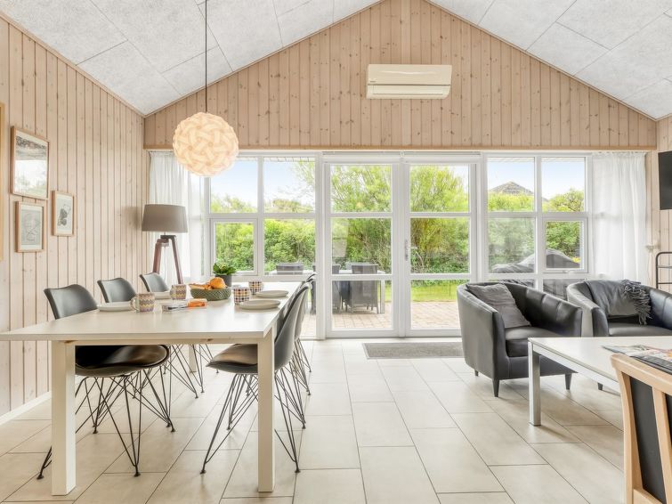 "Alfuin" - 500m from the sea in NW Jutland", 4 rom hus 120 m2. Passer for 8 voksne + 1 barn. Stue med, TV, radio og CD-spiller. 1 rom med, 1 dobbeltseng. 1 rom med, 1 dobbeltseng. 1 rom med, 1 dobbeltseng. 1 rom med, 1 dobbel sovesoffa. Kjøkken (stekeovn, oppvaskmaskin, 4 keramiske kokeplater, mikrobølgeovn, frys). 2 dusjer/WC, boblebad. Terrasse 6 m2, dekt. Fasiliteter: høy barnestol barneseng (ekstra). Internett (trådløs LAN [WLAN]). Vennligst merk: røykfri bolig. Max kjæledyr / hund tillatt 1 kjæledyr / hund tillatt.