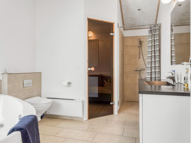 Enmannsbolig, bygget i 2014. 500 m fra sjøen. Privat: uberørt tomt 1'800 m2. Terrasse (100 m2), lekeplass. I huset: badstu, vaskemaskin, tørketrommel. Parkering ved hbrukt. Daglivarehandel 1.5 km. Eieren godtar ikke noen ungdomsgrupper.