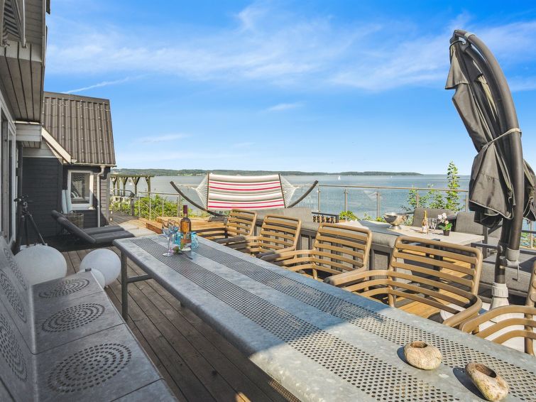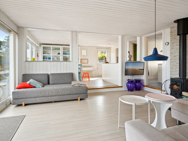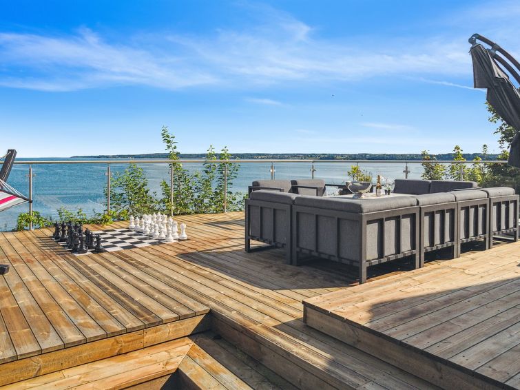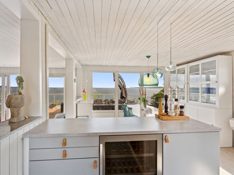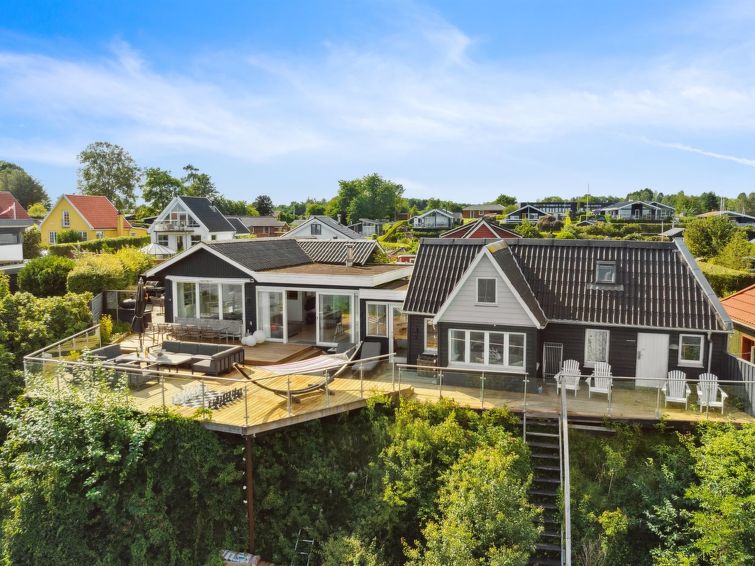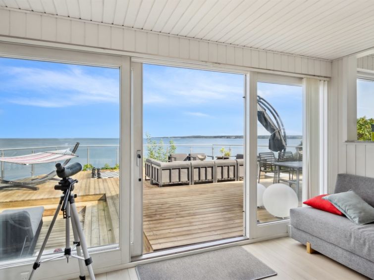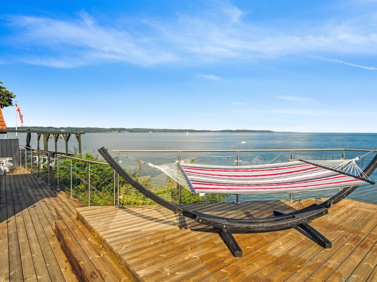 "Alimpij" - 5m from the sea in SE Jutland", 4 rom hus 105 m2. Passer for 7 voksne. Stue med, 1 sovesoffa og TV. 1 rom med, 1 dobbeltseng. 1 rom med 2 senger. 1 rom med, 1 x 2 køysenger. Kjøkken (stekeovn, oppvaskmaskin, 4 induksjonskomfyr, mikrobølgeovn, frys). 2 dusjer/WC. Utsikt av havet og viken. Fasiliteter: Internett (trådløs LAN [WLAN]). Vennligst merk: røykfri bolig.