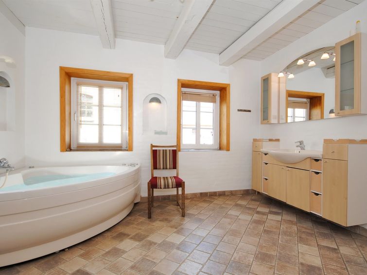 "Alois" - 1km to the inlet in The Liim Fiord", 6 rom hus 200 m2. Passer for 12 voksne + 1 barn. Stue med, TV, radio, CD-spiller og stereoanlegg. 1 rom med, 1 dobbeltseng. 1 rom med, 1 dobbeltseng. 1 rom med, 1 dobbeltseng. Kjøkken (stekeovn, oppvaskmaskin, 4 keramiske kokeplater, frys). Dusj/WC, boblebad. øverste etasje: 1 rom med, 1 dobbeltseng. 1 rom med, 1 dobbeltseng. 1 rom med, 1 dobbeltseng. Av viken. Fasiliteter: høy barnestol barneseng (ekstra). Internett (trådløs LAN [WLAN]). Max kjæledyr/små hunder tillatt 2 kjæledyr/små hunder tillatt.