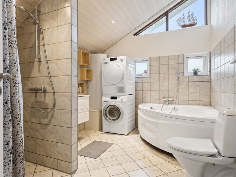 "Alpa" - 600m from the sea in SE Jutland", 3 rom hus 94 m2. Passer for 6 voksne. Stue med, TV. 1 rom med, 1 dobbeltseng. 1 rom med, 1 dobbeltseng. 1 rom med, 1 dobbeltseng. Kjøkken (stekeovn, oppvaskmaskin, 4 keramiske kokeplater, frys). 2 dusjer/WC, boblebad. Fasiliteter: høy barnestol. Internett (trådløs LAN [WLAN]). Vennligst merk: røykfri bolig.