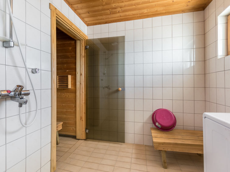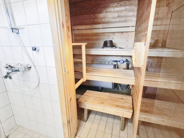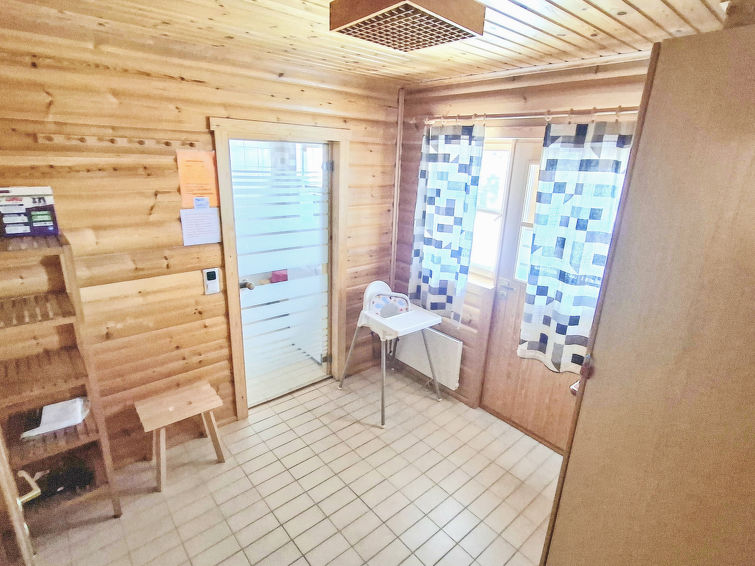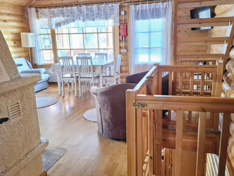 A semi-detached house located in the Ukkohalla tourism centre, 6 persons, 63,5 m², built in 1991, premises on 3 floors, kitchen, bedroom with a double bed, loft, sauna, shower room and separate toilet downstairs, dressing room, balcony, terrace, vestibule, fireplace, 3 beds on the loft, child safety gate on top of the stairs. Steep stairs! Toilet on the ground floor. Ukkohalla: Tourism centre located by Lake Syväjärvi, with an information centre, store, restaurant, spa, slope centre, snowmobile tracks, ski tracks, programme services, Cable Wakeboard, beach (further information at www.ukkohalla.fi). Disatnce to the Ukkohalla services 0.7 km. Kajaani airport 86 km, Oulu 170 km, Helsinki 650 km, bus stop Hyrynsalmi 18 km, railway station Kontiomäki 66 km.