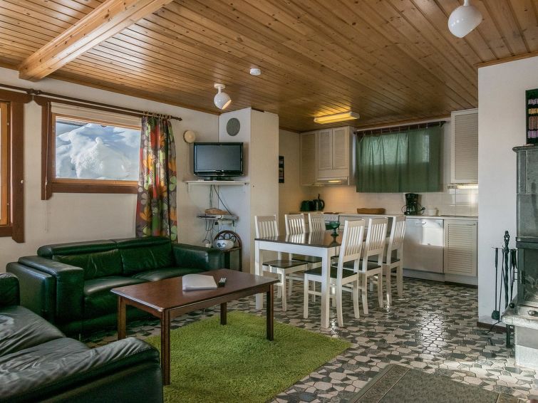 Price includes 1 bag of firewood. Extra wood from caretaker 10 euroa/bag. Ukkohalla: Tourism centre located by Lake Syväjärvi, with an information centre, store, restaurant, spa, slope centre, snowmobile tracks, ski tracks, programme services, beach (further information at www.ukkohalla.fi). Distance to the Ukkohalla services 1.5 km. Kajaani airport 86 km, Oulu 170 km, Helsinki 650 km, bus stop Hyrynsalmi 18 km, railway station Kontiomäki 66 km. Pets prohibited. Beautiful view over the slopes and Lake Syväjärvi. Cottage is available at 4.00pm on arriving day - till 12.00 on departure day.