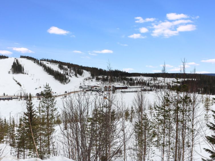 Ukkohalla: Tourism centre located by Lake Syväjärvi, with an information centre, store, restaurant, spa, slope centre, snowmobile tracks, ski tracks, programme services, beach (further information at www.ukkohalla.fi). Distance to the Ukkohalla services 1.5 km. Kajaani airport 86 km, Oulu 170 km, Helsinki 650 km, bus stop Hyrynsalmi 18 km, railway station Kontiomäki 66 km. Pets prohibited, beautiful view over the slopes and Lake Syväjärvi.