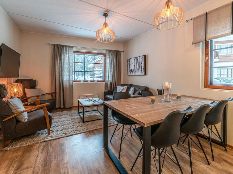 Cozy apartment in Levi tourist center. All essential services are within walking distance. Easy access to the ski slope and illuminated ski track.