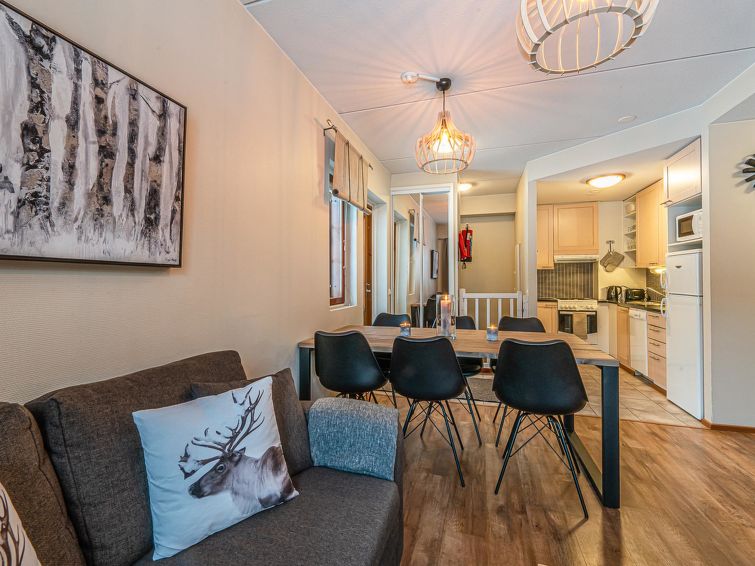 The nearest ski slope is Eturinne located in Levi center, distance 400 m. Several restaurants, 100 – 500 m.