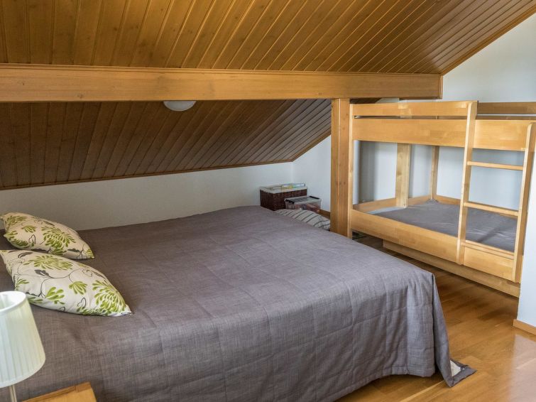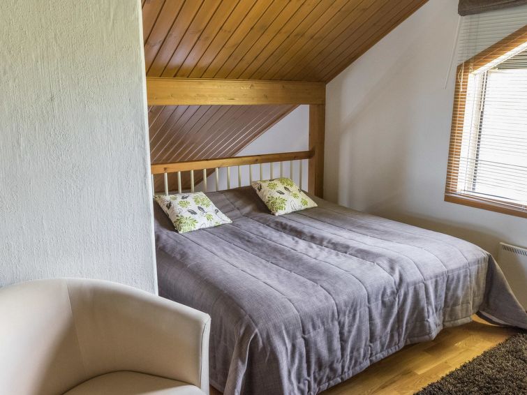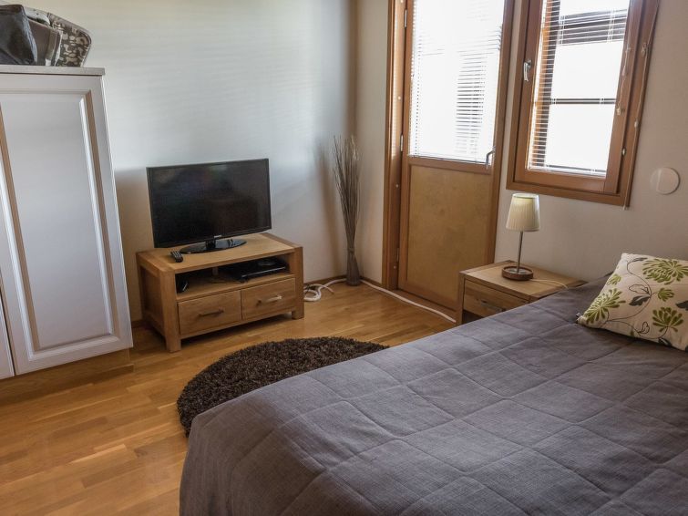 In upstairs bed room with two beds and bunk bed for children (size 70 x 155 cm, short, no suitable for adults), loft two beds. In the bed room upstairs there is also tv, child gate in the stairs. Note! Apartment is suitable for max. 6 adults + 2 children.