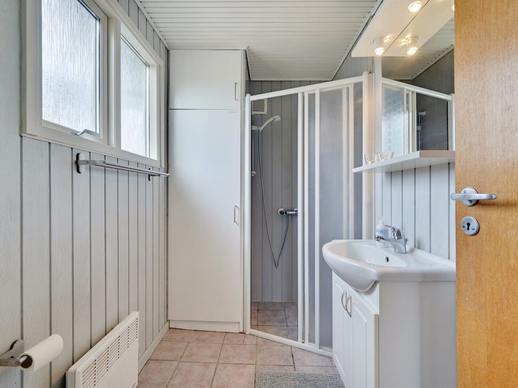 Enmannsbolig, bygget i 1974. 500 m fra sjøen. Privat: tomt 973 m2, velholdt hage. Terrasse (80 m2), grill, lekeplass (huske). I huset: badstu, fotballsbord, trikkpolinje, vaskemaskin, tørketrommel. Parkering ved hbrukt. Daglivarehandel 6 km. Eieren godtar ikke noen ungdomsgrupper.