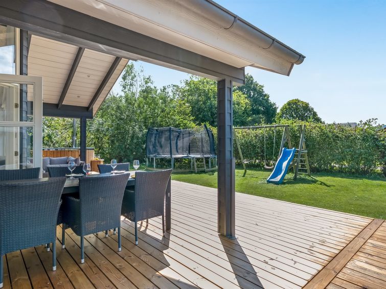 "Alrike" - 850m from the sea in Djursland and Mols", 4 rom hus 114 m2. Passer for 8 voksne + 1 barn. Stue med, TV, stereoanlegg og DVD. 1 rom med, 1 dobbeltseng. 1 rom med, 1 dobbeltseng. 1 rom med 2 senger. Åpen galleri, 1 rom med, 1 dobbeltseng. Kjøkken (stekeovn, oppvaskmaskin, 4 induksjonskomfyr, mikrobølgeovn, frys). 2 dusjer/WC, boblebad. Terrasse 30 m2, dekt. Fasiliteter: høy barnestol barneseng (ekstra). Internett (trådløs LAN [WLAN]). Vennligst merk: røykfri bolig. Max kjæledyr / hund tillatt 1 kjæledyr / hund tillatt.