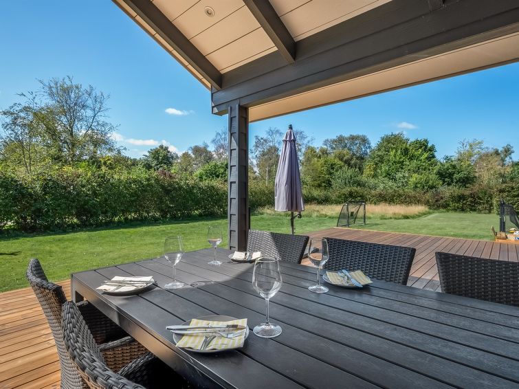 Enmannsbolig, bygget i 2014. 850 m fra sjøen. Privat: tomt 1'501 m2, velholdt hage. Terrasse (105 m2), lekeplass (huske). I huset: badstu, trikkpolinje, vaskemaskin, tørketrommel. Parkering ved hbrukt. El-ladestasjon. Daglivarehandel 500 m. Golfbane 15 km. Eieren godtar ikke noen ungdomsgrupper.
