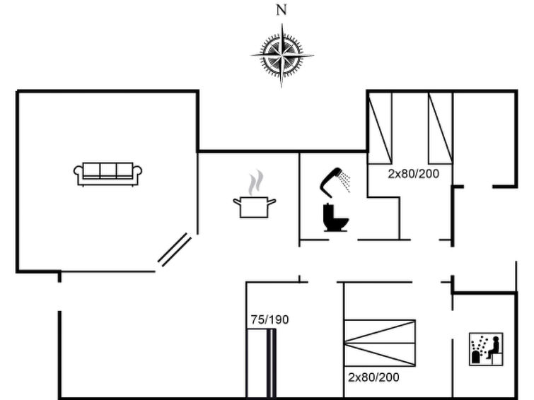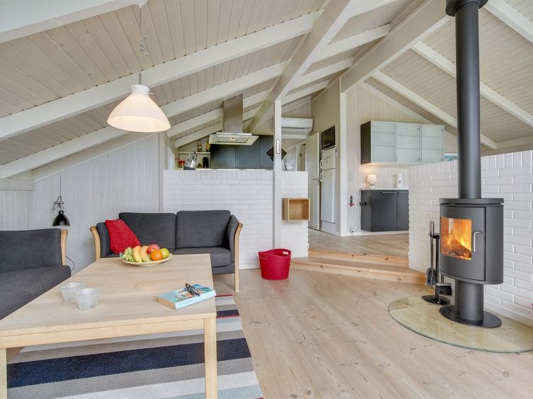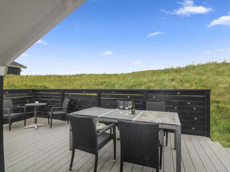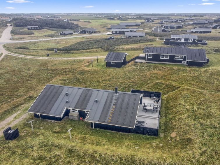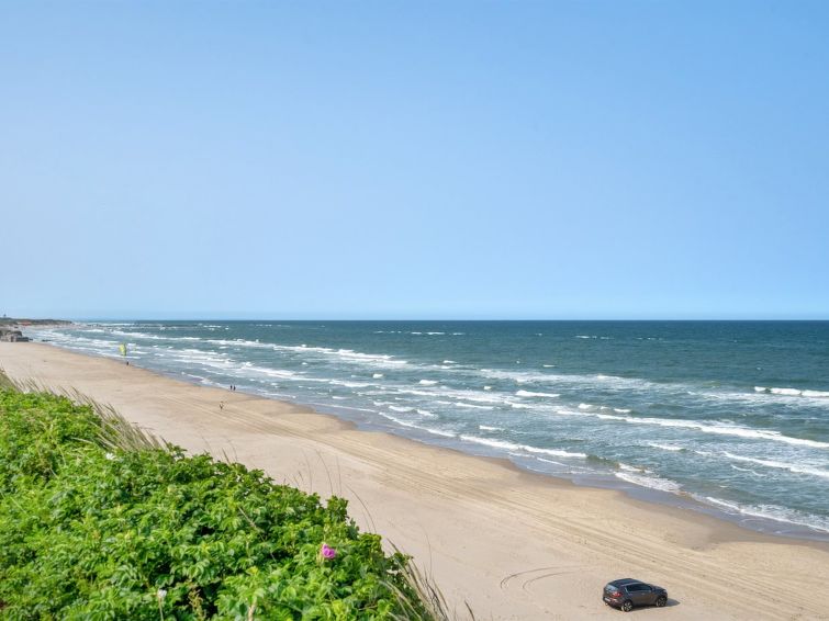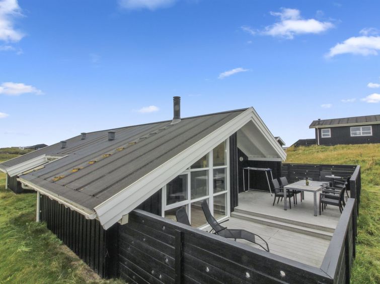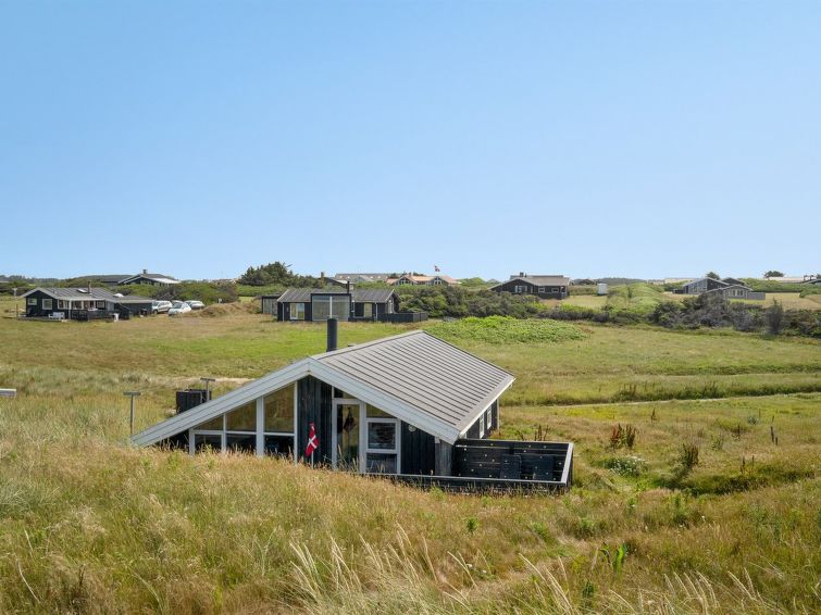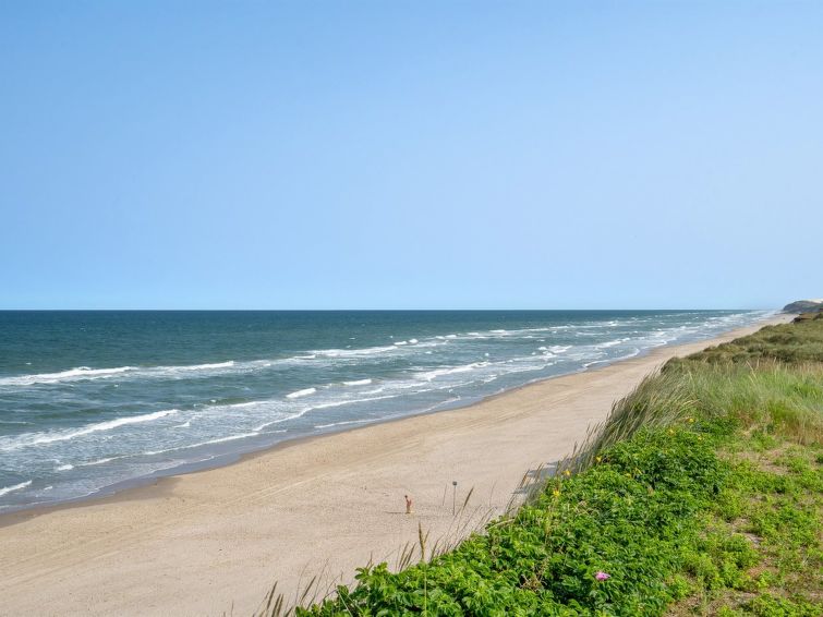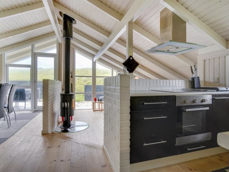 "Alruna" - 150m from the sea in NW Jutland", 3 rom hus 81 m2. Passer for 6 voksne. Stue med, TV og radio. 1 rom med, 1 dobbeltseng. 1 rom med 2 senger. 1 rom med, 1 x 2 køysenger. Kjøkken (stekeovn, oppvaskmaskin, 4 keramiske kokeplater, mikrobølgeovn, frys). Dusj/WC. Utsikt av havet. Fasiliteter: høy barnestol. Internett (trådløs LAN [WLAN]). Vennligst merk: røykfri bolig.