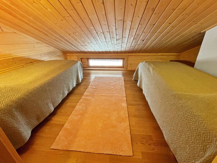 Upstairs is a loft with 4 beds. Small room with 2 beds. (upper floor at its highest point 172cm).