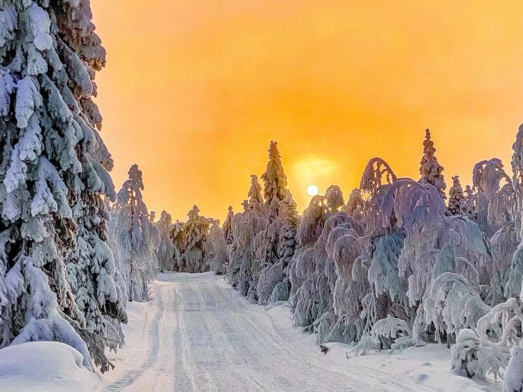 The ski-in ski-out semi-detached cottage is located along the Tykkylaakso slope. Straight from the yard to the slope and back. Local lift super fast Masto express chair lift. Outdoor-skiing-cross-country-downhill cycling routes right next door.