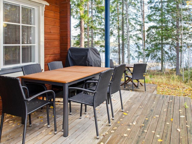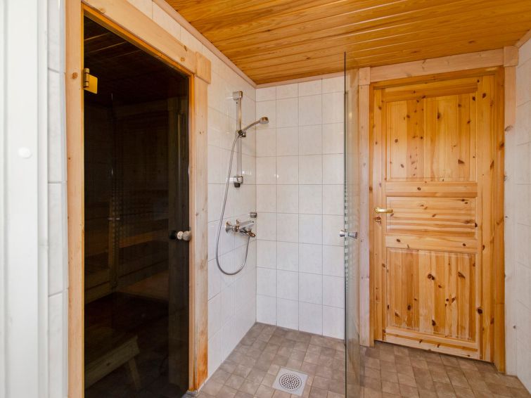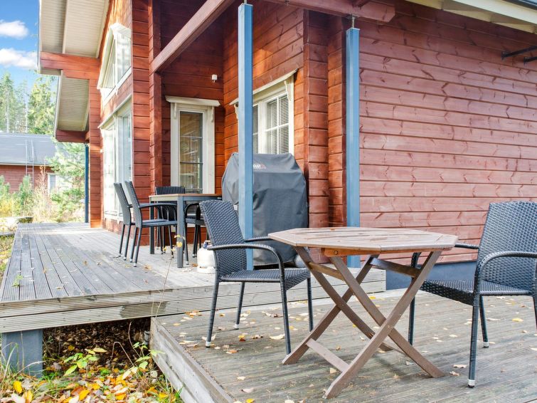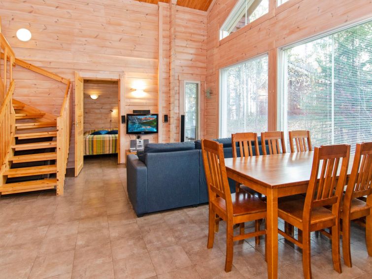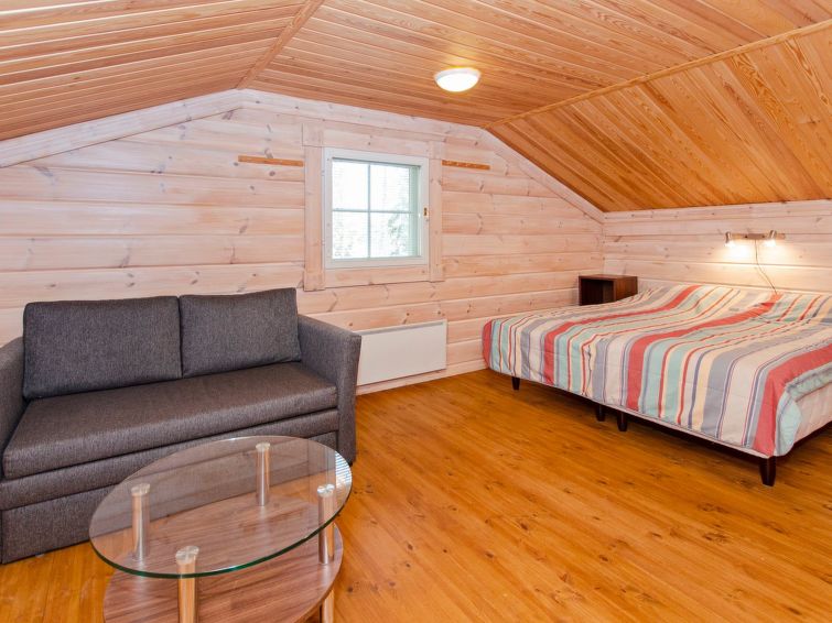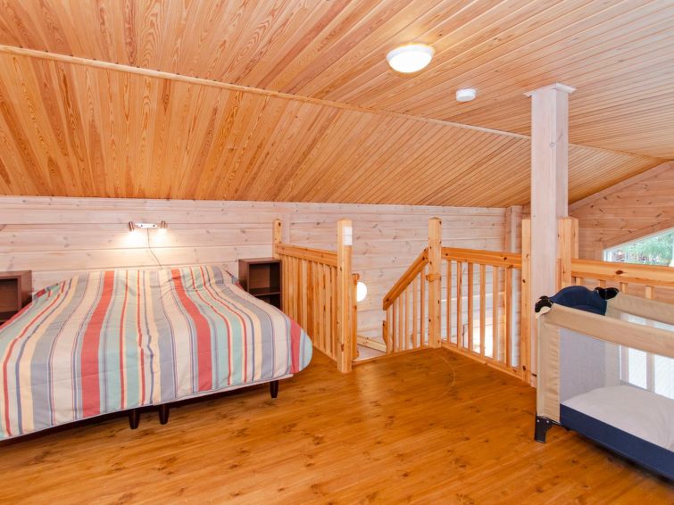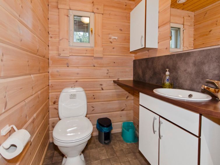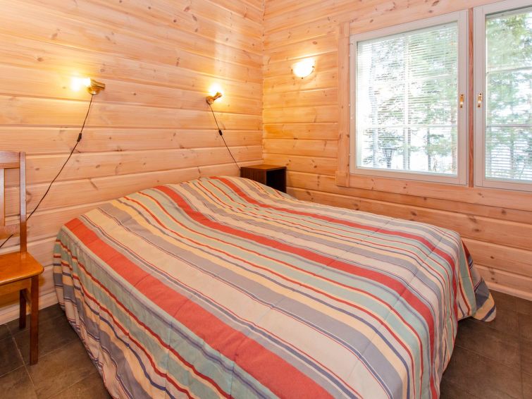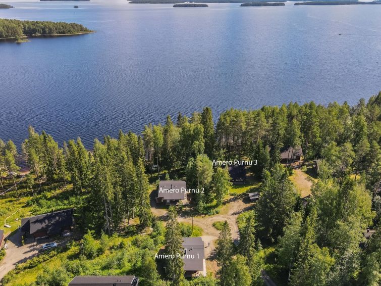 72 km north of Joensuu, Lake Pielinen 40 m (871,2 km2), common shore and common boat with cottage Amero Purnu 1, gently deepening rocky bottom. Log cottage 2007, kitchen-living room, two bedrooms with double beds, upstairs sleeping gallery with 2 beds and convertible sofa, dressing room, washroom, sauna (elec. stove), veranda and terrace. Well-equipped log cottage, suitable for instance for a bigger family situated in the Purnuniemi cottage area by the Lake Pielinen. Tv in living room and in the sleeping gallery. Finnish and Russian TV channels. Internet 4G WI-FI. There are baby bed and high chair. A gas grill on the terrace. The terrace also has garden furniture. The car's heating socket is on the terrace, so take the extension cord with you. Good possibilities for fishing. There are no life jackets in the cottage. Guests of Amero Purnu 2 walk to the shore by passing Amero Purnu 1.