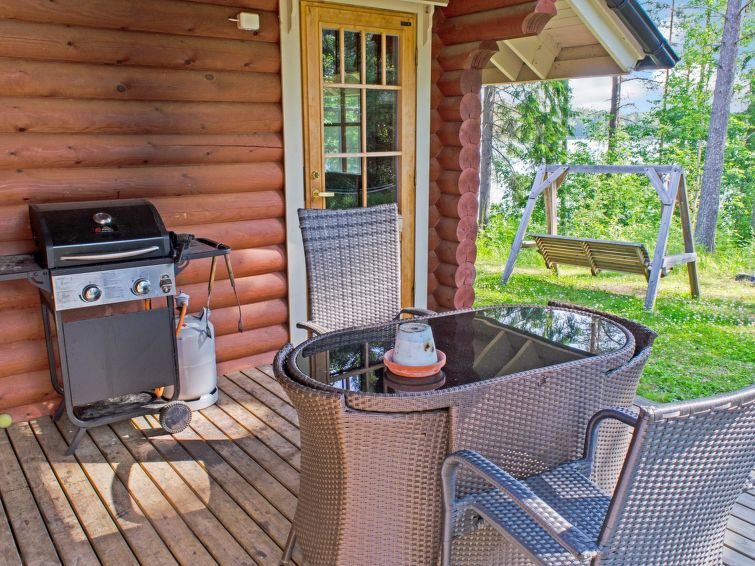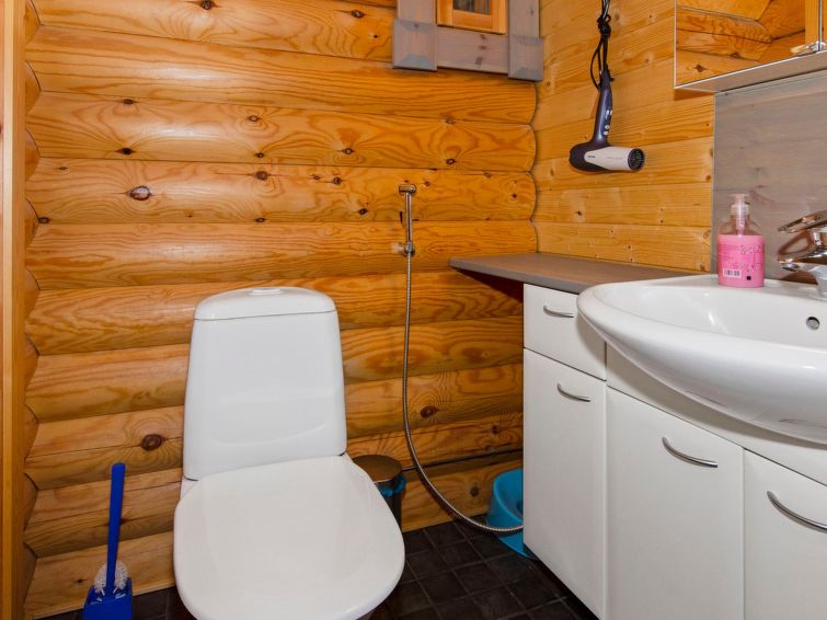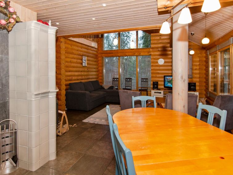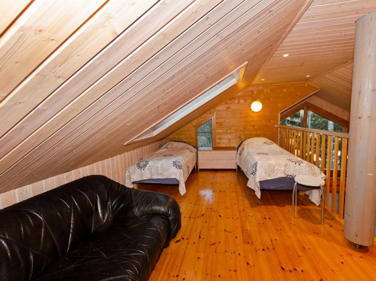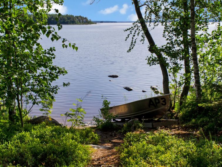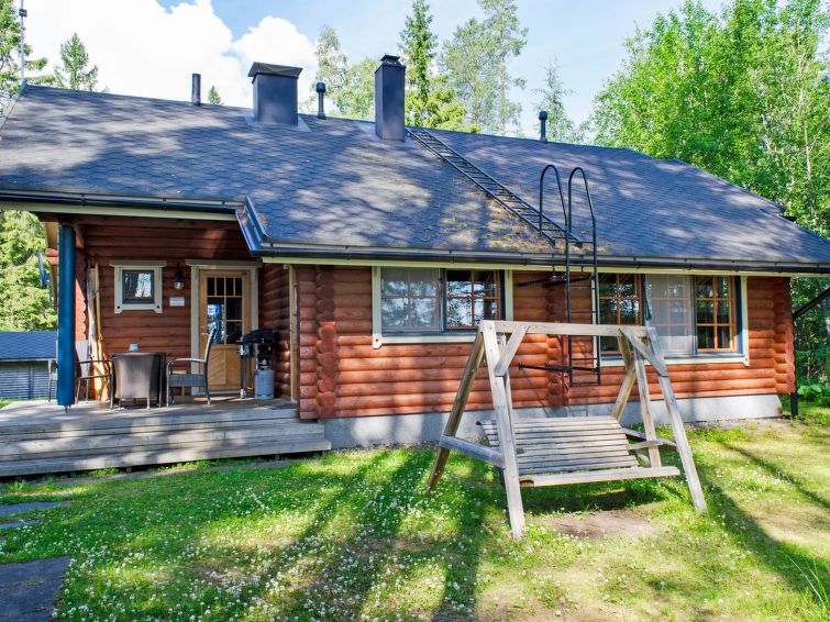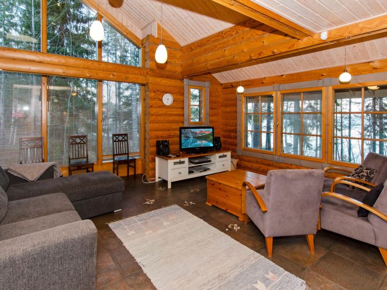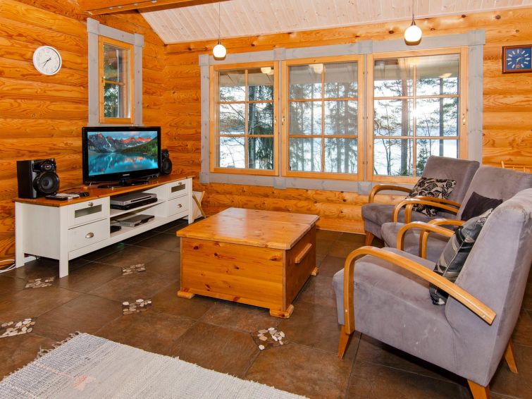 72 km north of Joensuu, Lake Pielinen 40 m (871,2 km2), own shore and own boat, gently deepening bottom with some rocks and some sand. Log cottage 2006, kitchen-living room, one bed room with 2 beds, one bed room with one bed and bunk bed, upstairs one bed room with 2 beds and sleeping gallery with 2 beds, dressing room, washroom, sauna (elec. stove), veranda and terrace. Well-equipped log cottage, suitable for instance for a bigger family situated in the Purnuniemi cottage area by the Lake Pielinen. Good possibilities for grilling. Finnish and Russian TV channels. Internet 4G WI-FI. The terrace also has garden furniture. The car's heating socket is on the of the storage, so take the extension cord with you. Good possibilities for fishing. There are no life jackets in the cottage. The Koli National park trails are close by. The cottages suits down hill as well as cross country skiers; Ukko-Koli slopes 3,5 km and illuminated skiing track 0,5 km. Berries and mushrooms in the surrounding area. Extra fee for dogs. Cats and snakes are not allowed. Final cleaning cost includes to the price.