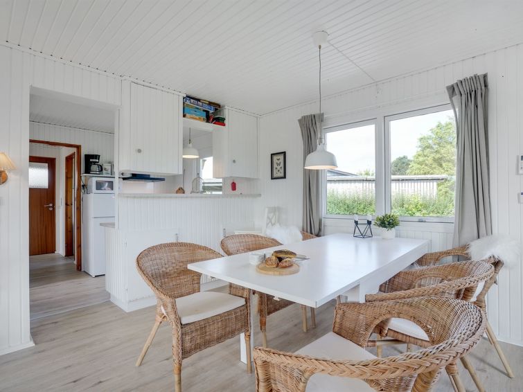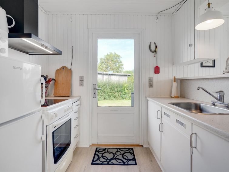 "Amilla" - 150m from the sea in SE Jutland", 2 rom hus 55 m2. Passer for 6 voksne. Stue med, TV og DVD. 1 rom med, 1 dobbeltseng. 1 rom med, 2 x 2 køysenger. Kjøkken (stekeovn, 4 keramiske kokeplater, mikrobølgeovn, frys). Dusj/WC. Terrasse 10 m2, dekt. Utsikt av havet. Fasiliteter: høy barnestol. Internett (trådløs LAN [WLAN]). Vennligst merk: røykfri bolig.