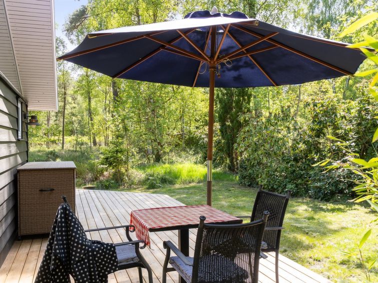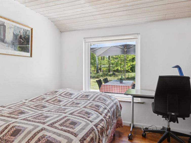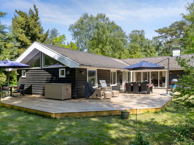 Enmannsbolig, bygget i 2005. 1.1 km fra sjøen. Privat: tomt 1'994 m2, velholdt hage. Terrasse (80 m2), grill, lekeplass (huske). I huset: vaskemaskin. Parkering ved hbrukt. Daglivarehandel 1.1 km. Golfbane 7.8 km. Eieren godtar ikke noen ungdomsgrupper.
