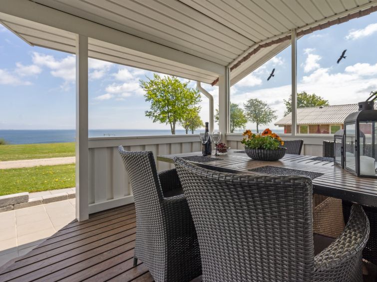 "Anastacia" - 75m from the sea in SE Jutland", 3 rom hus 70 m2. Passer for 6 voksne. Stue med, TV, radio og CD-spiller. 1 rom med, 1 dobbeltseng. 1 rom med, 1 dobbeltseng. 1 rom med, 1 x 2 køysenger. Kjøkken (stekeovn, oppvaskmaskin, 4 keramiske kokeplater, mikrobølgeovn, frys). Dusj/WC. Terrasse 15 m2, dekt. Utsikt av havet. Fasiliteter: høy barnestol barneseng (ekstra). Internett (trådløs LAN [WLAN]). Vennligst merk: røykfri bolig.