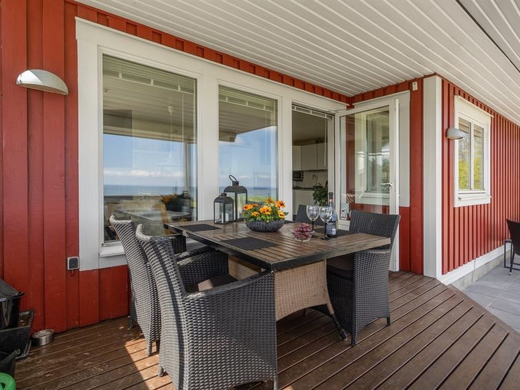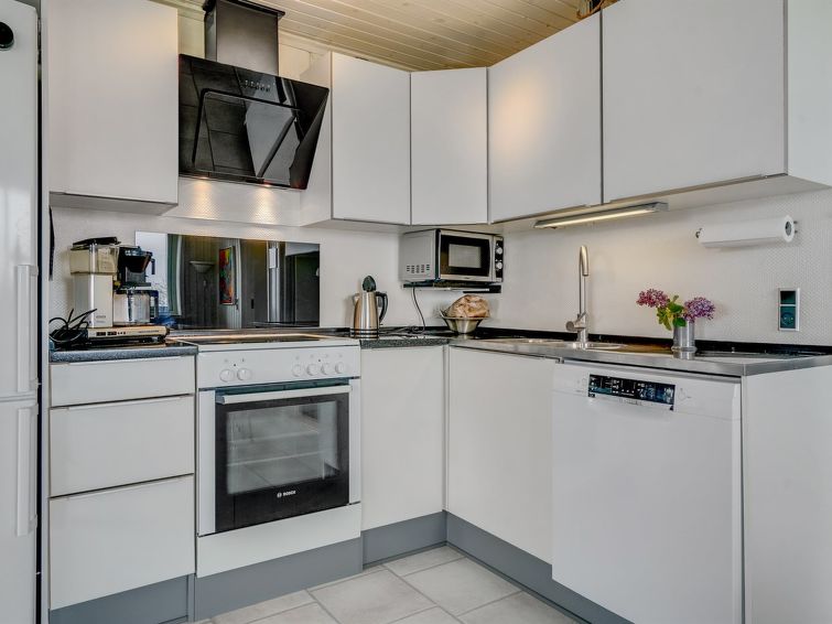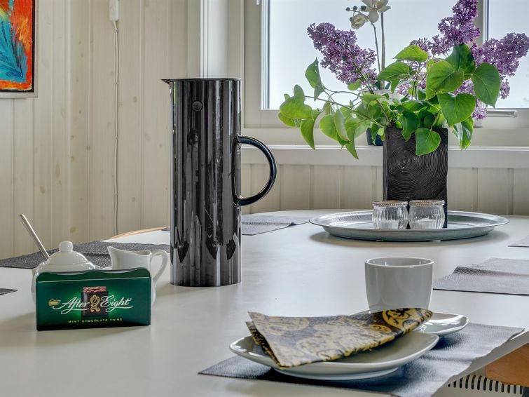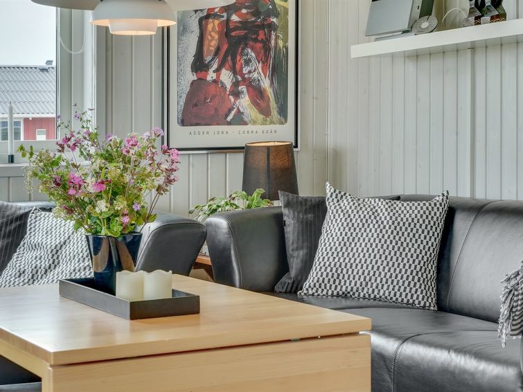 Enmannsbolig, bygget i 2000. 75 m fra sjøen. Privat: tomt 300 m2, velholdt hage. Terrasse (85 m2), grill, parkering ved hbrukt. Daglivarehandel 5 km. Eieren godtar ikke noen ungdomsgrupper.