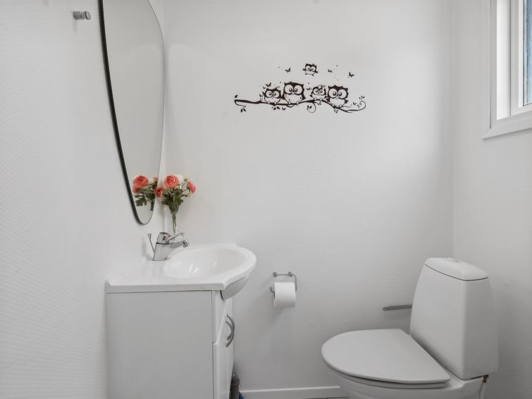 Enmannsbolig, bygget i 1976. 200 m fra sjøen. Privat: tomt 800 m2, velholdt hage. Grill. I huset: badstu, vaskemaskin, tørketrommel. Parkering ved hbrukt. Daglivarehandel 6 km. Golfbane 12 km. Eieren godtar ikke noen ungdomsgrupper.