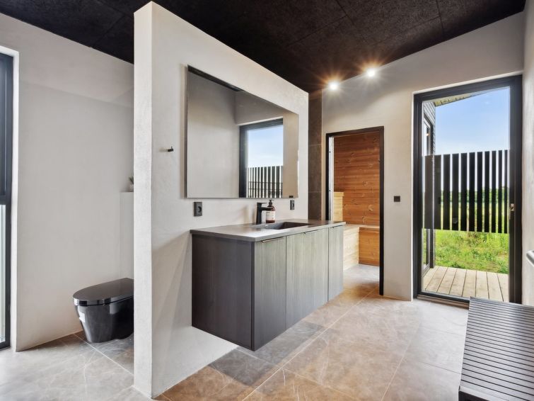 Enmannsbolig, bygget i 2023. 500 m fra sjøen. Privat: uberørt tomt 1'243 m2. Lekeplass (huske). I huset: badstu, trikkpolinje, vaskemaskin, tørketrommel. Parkering ved hbrukt. Daglivarehandel 2 km. Eieren godtar ikke noen ungdomsgrupper.