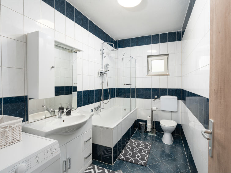 4 rom hus 120 m2, i forhøyet bunnetasje, beliggenhet mot sør-vest. Stue/spisestue 49 m2 med, TV og internasjonale TVkanaler (flatskjerms TV), air-conditioning. Utgang til terrassen. 1 rom med, 1 dobbeltseng (160 cm, lengde 200 cm), elektrisk oppvarming. 1 rom med, 1 dobbeltseng (180 cm, lengde 200 cm), elektrisk oppvarming. 1 rom med 2 senger (90 cm lengde 200 cm), elektrisk oppvarming. Åpent kjøkken (1 kokeplate, stekeovn, oppvaskmaskin, 3 gassbrennere, frys, elektrisk kaffemaskin). Bad/WC. Oppvarming, airconditioning (ekstra). Terrasse 18 m2. Terrassemøbler. Fasiliteter: vaskemaskin, strykejern, hårføner. Internett (trådløs LAN [WLAN], gratis).