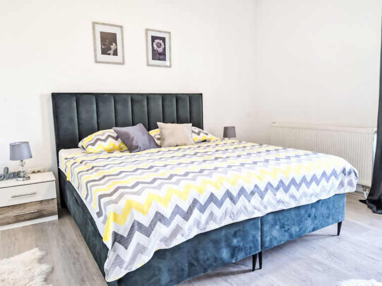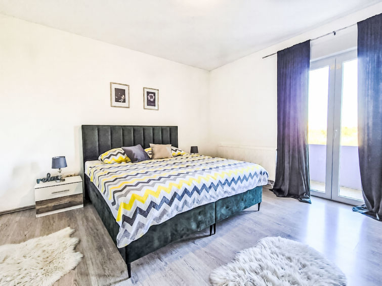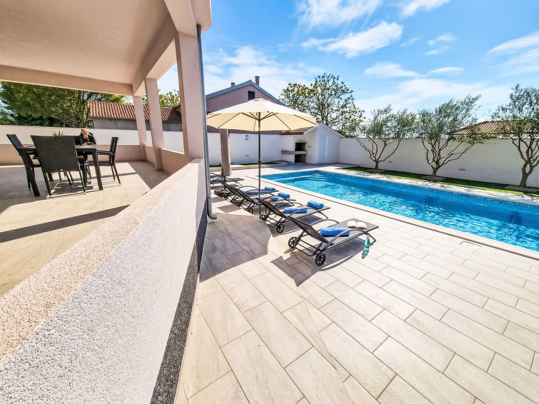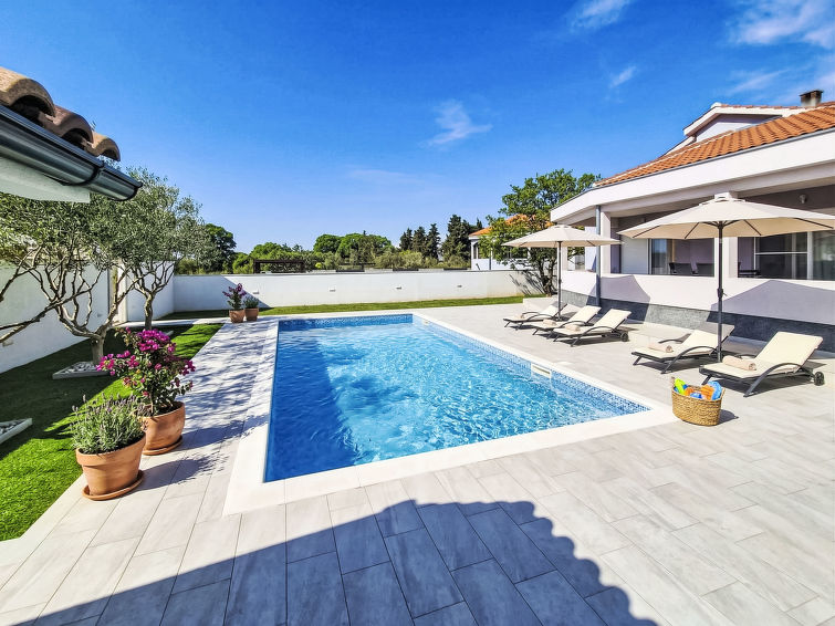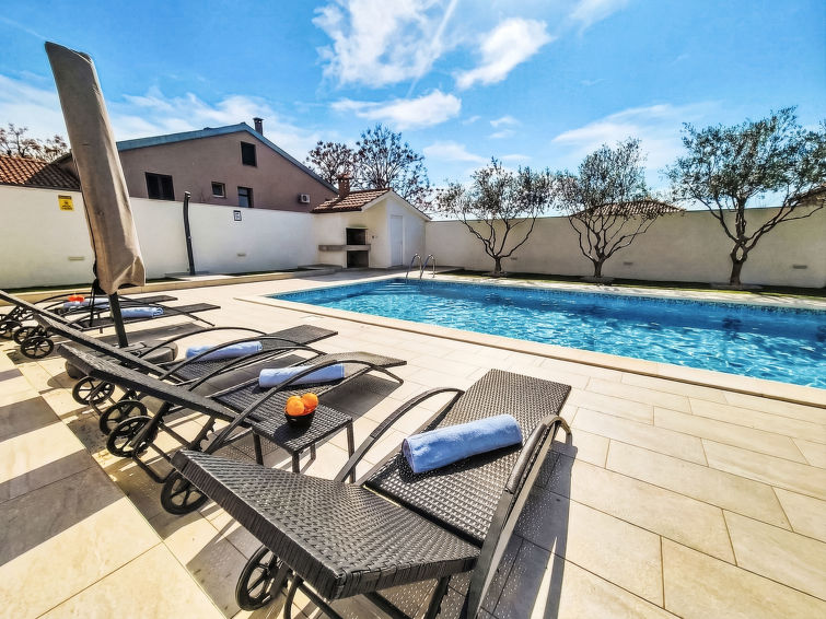 4 rom hus 120 m2, beliggenhet mot sør-vest. Stue/spisestue 50 m2 med, satelit-TV (flatskjerms TV), air-conditioning. Utgang til terrassen. 1 rom med, 1 dobbeltseng (180 cm, lengde 200 cm), 1 klappseng (80 cm, lengde 190 cm). Utgang til balkongen. 1 rom med 2 senger (90 cm lengde 200 cm), 1 klappseng (80 cm, lengde 190 cm). Utgang til balkongen. 1 rom med, 1 dobbeltseng (180 cm, lengde 200 cm). Åpent kjøkken (stekeovn, oppvaskmaskin, 4 keramiske kokeplater, mikrobølgeovn, frys, elektrisk kaffemaskin). Bad/WC, dusj/WC. Oppvarmingsalternativ. 2 balkonger 2 m2, terrasse 40 m2, dekt. Terrassemøbler, liggestoler. Utsikt av svømmebassenget. Fasiliteter: safe, barneseng, hårføner. Internett (trådløs LAN [WLAN], gratis).