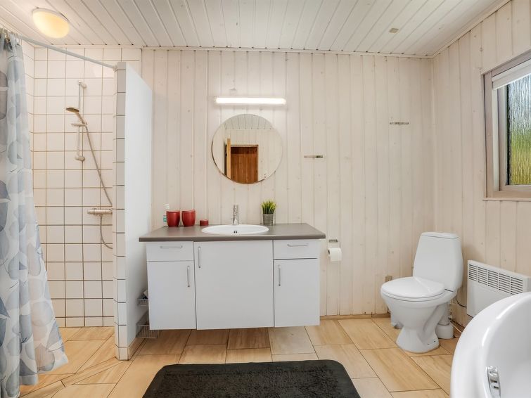 "Anine" - 200m to the inlet in The Liim Fiord", 5 rom hus 115 m2. Passer for 11 voksne + 1 barn. Stue med, TV, CD-spiller, stereoanlegg og DVD. 1 rom med, 1 dobbeltseng. 1 rom med 1 seng og 1 x 2 køysenger. 1 rom med 2 senger. 1 rom med, 1 dobbeltseng. 1 rom med, 1 x 2 køysenger. Kjøkken (stekeovn, oppvaskmaskin, 4 keramiske kokeplater, mikrobølgeovn, frys). 2 dusjer/WC, boblebad. Fasiliteter: høy barnestol barneseng (ekstra). Internett (trådløs LAN [WLAN]). Vennligst merk: røykfri bolig. Max kjæledyr/små hunder tillatt 2 kjæledyr/små hunder tillatt.