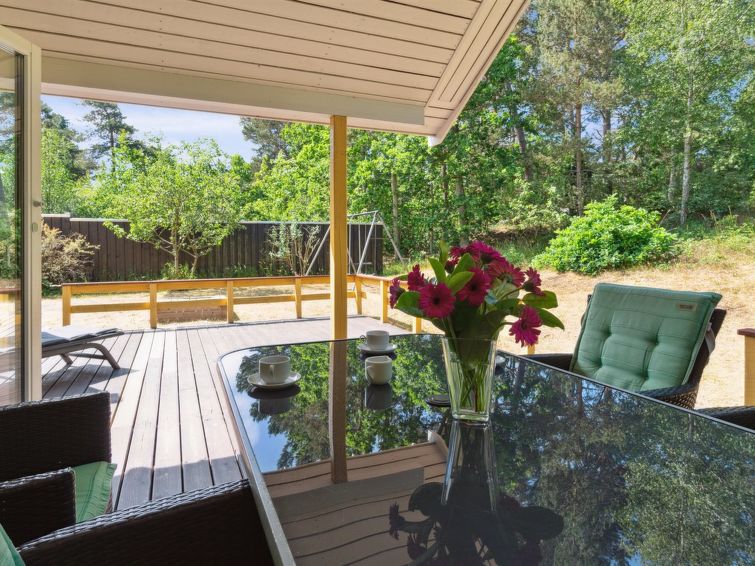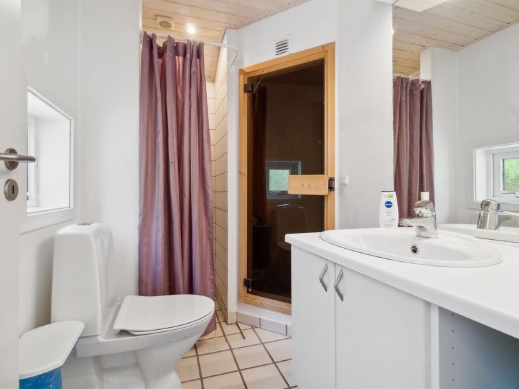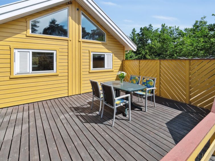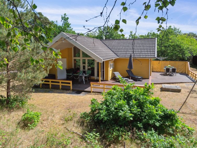 Enmannsbolig, bygget i 2000. 250 m fra sjøen. Privat: uberørt tomt 1'210 m2. Terrasse (70 m2), grill, lekeplass (huske). I huset: badstu, vaskemaskin, tørketrommel. Parkering ved hbrukt. Daglivarehandel 400 m. Golfbane 7 km. Eieren godtar ikke noen ungdomsgrupper.