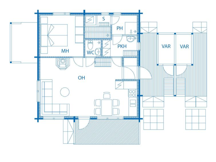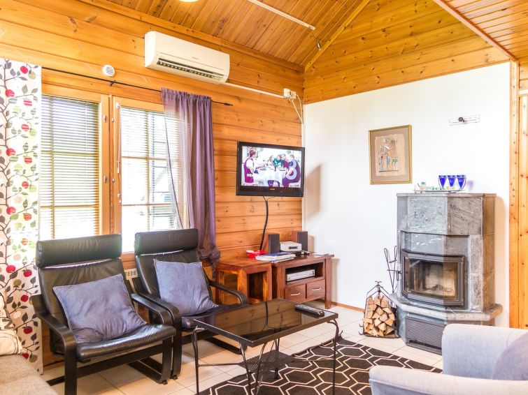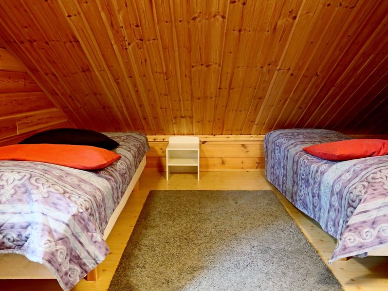 In upstairs bedroom 4 beds, open loft 2 beds. WC both in the upper and lower floors. Air-source heat pump with cooling fuction. The kitchen and sauna facilities have been renovated in 2012.