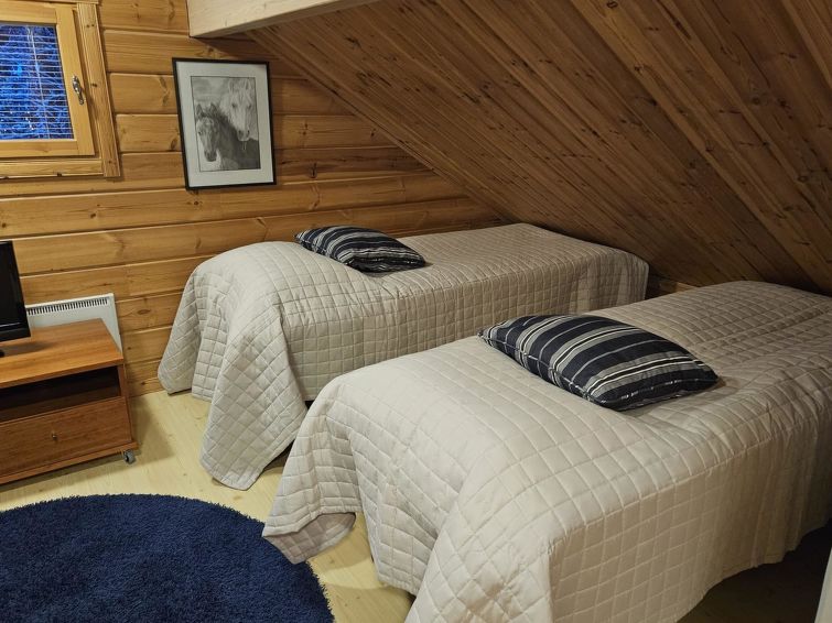 In upstairs bedroom 3 beds, open loft 2 beds. WC both in the upper and lower floors. Air-source heat pump with cooling fuction. The kitchen and sauna facilities have been renovated in 2012.