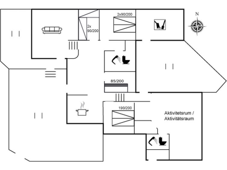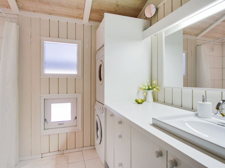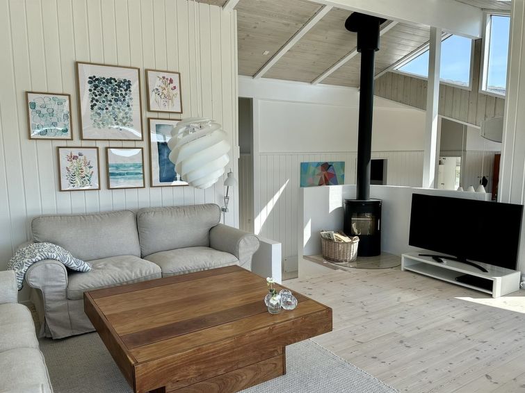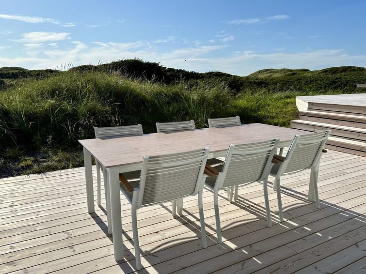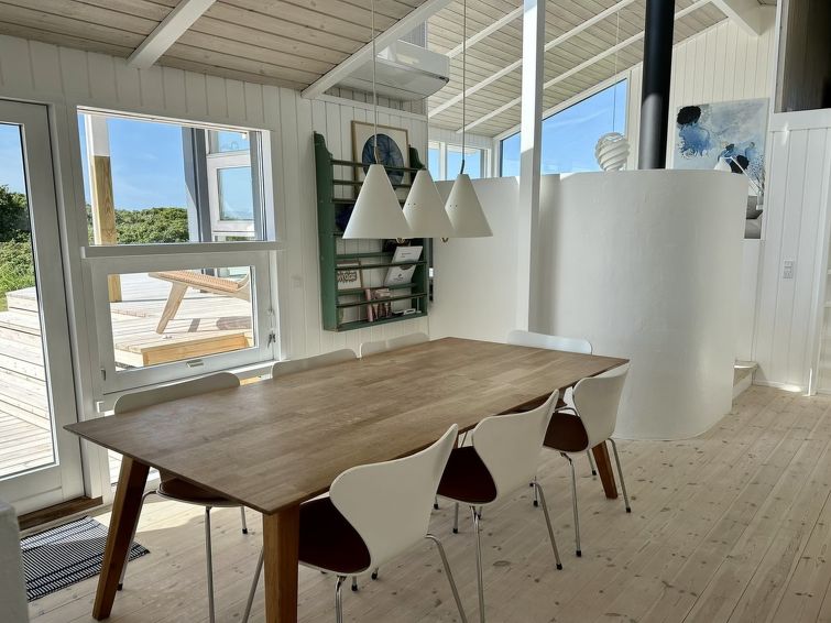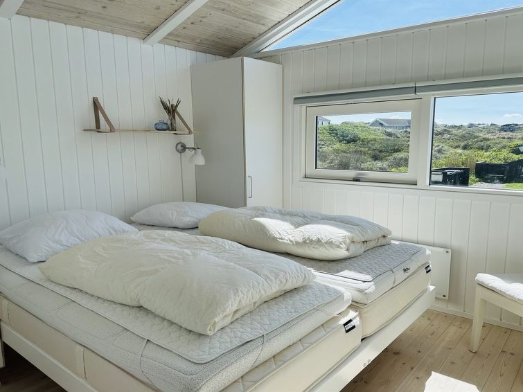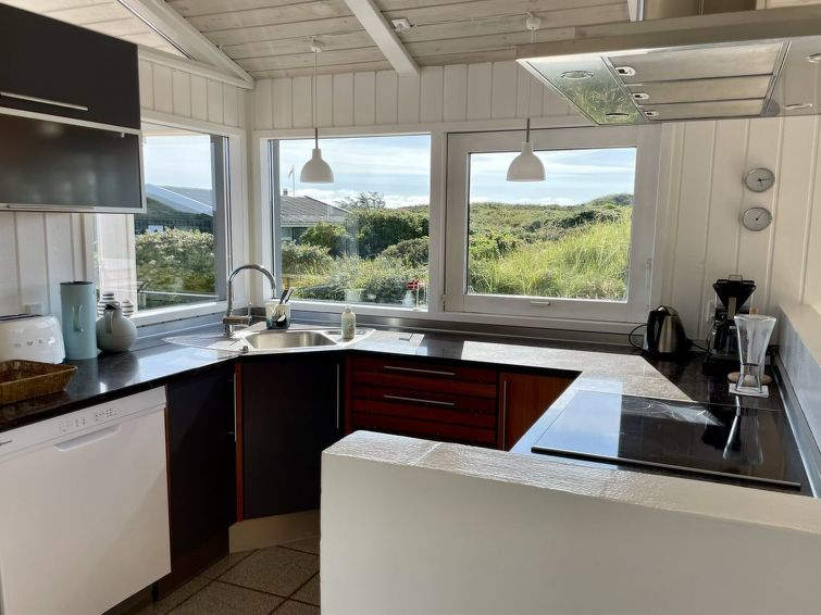 "Annaliese" - 175m from the sea in NW Jutland", 5 rom hus 133 m2. Passer for 8 voksne + 1 barn. Stue med, TV, radio, CD-spiller og DVD. 1 rom med, 1 dobbeltseng. 1 rom med, 1 x 2 køysenger. 1 rom med 2 senger. 1 rom med, 1 dobbeltseng. Kjøkken (stekeovn, oppvaskmaskin, 4 keramiske kokeplater, frys). 2 dusjer/WC, boblebad. Utsikt av havet. Fasiliteter: høy barnestol barneseng (ekstra). Internett (trådløs LAN [WLAN]). Vennligst merk: røykfri bolig.