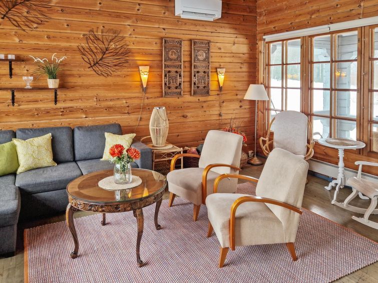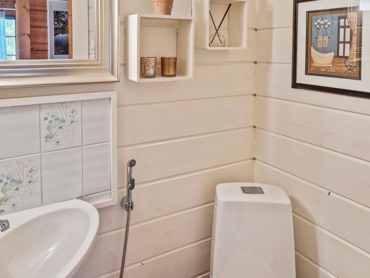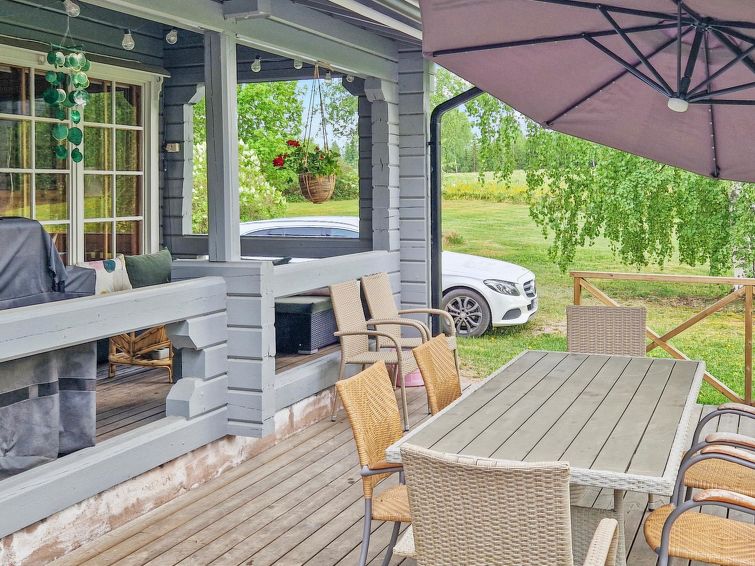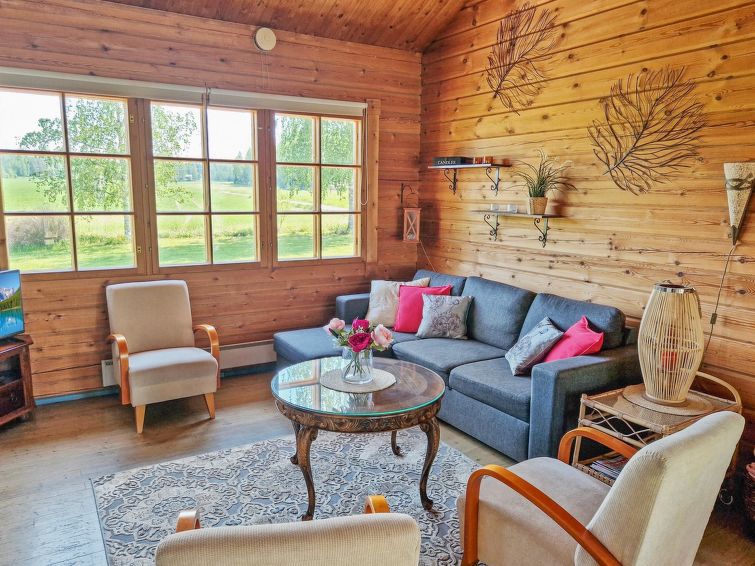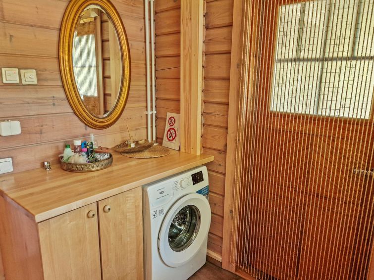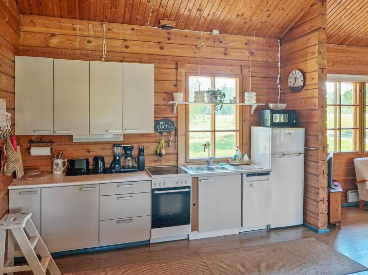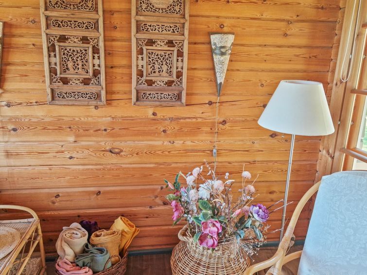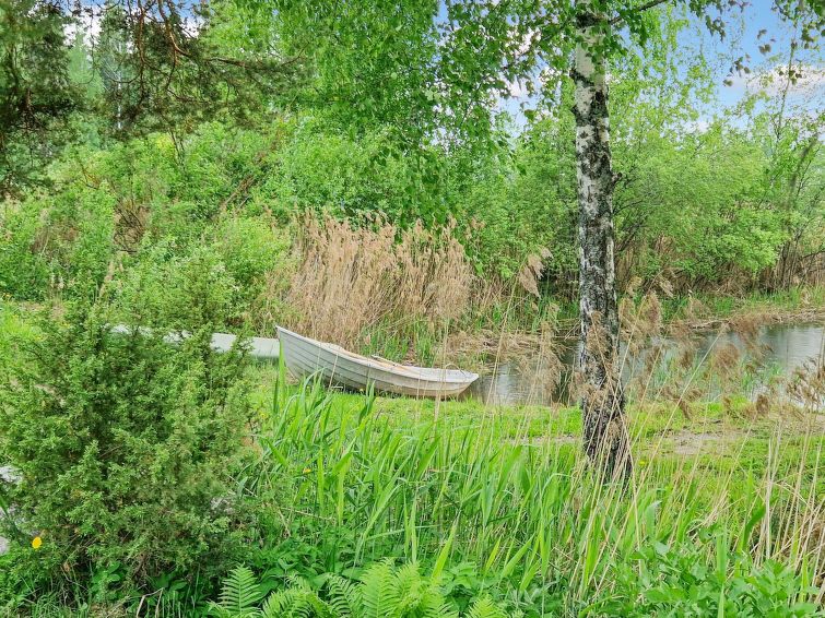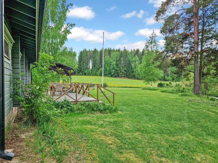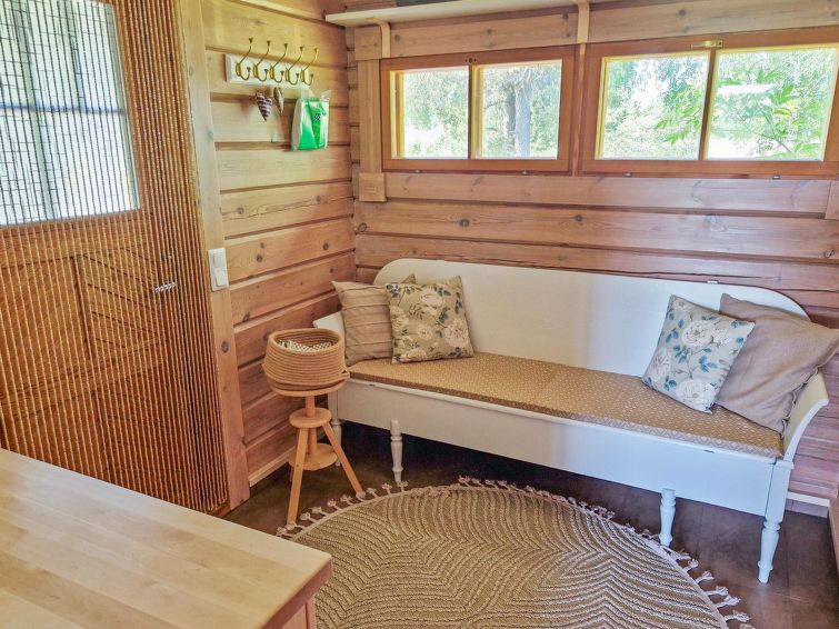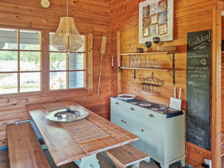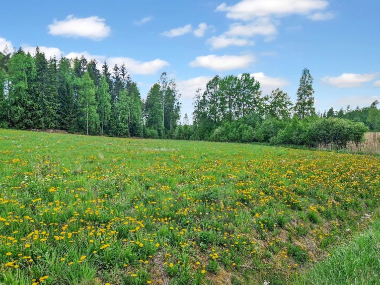 90 km north of Helsinki, River Puujoki 20 m, deep mud/clay bottom, partly sanded, own boat. Log cottage 1993, living room/kitchen, living room convertible sofa/bed for 2 persons, bedroom double bed, bedroom 2 beds (the bunk bed in the pictures does not have upped bed anymore), sauna with wood-burning stove, washroom with shower, dressing room, open terrace, gas grill. Peaceful cottage at field edge alongside river. Light, grassed yard area. Badminton field on the yard and canoe available. Distance to Lake Ansionjärvi 700 m along river (lake length 1.3 km, width 600 m) and to lake Mommilanjärvi (length 5 km, width 700 m) 1.5 km. Meals can be booked from catering services. Small game hunting by arrangement (note: licences required). Messilä ski resort 45 km, golf course 35 km, airport 80 km Lahti´s skiing center 42 km.
