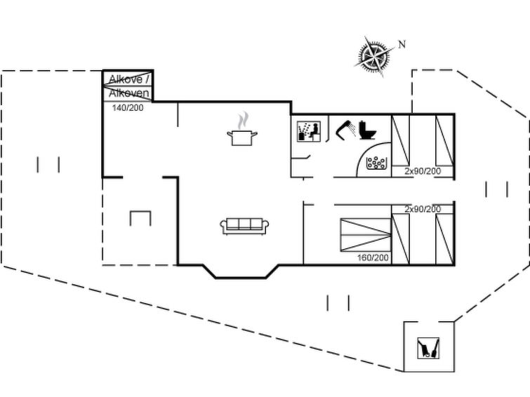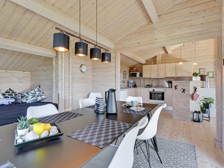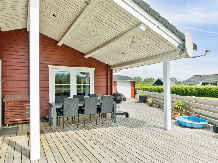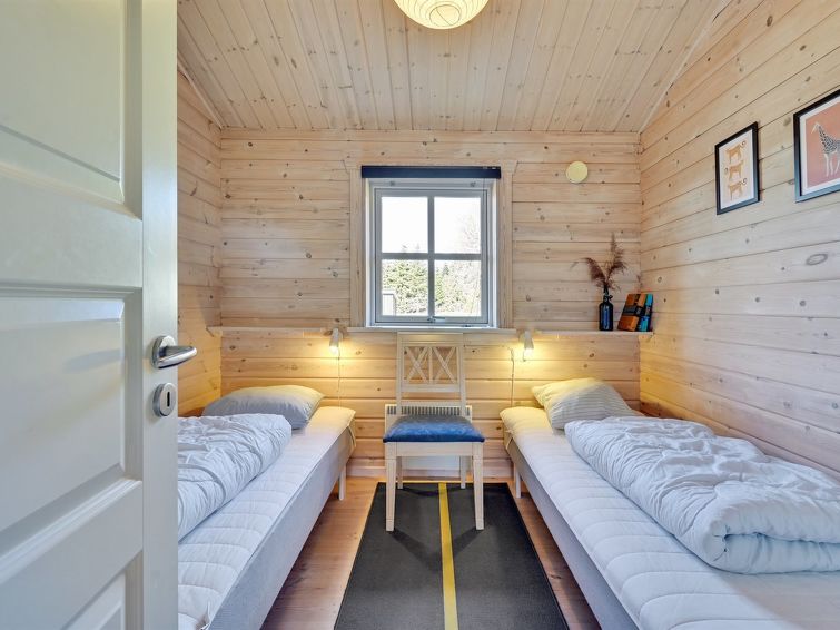 Enmannsbolig, bygget i 2007. 600 m fra sjøen. Privat: tomt 1'180 m2, velholdt hage. Terrasse (85 m2), grill, lekeplass (rutsjebane, huske). I huset: badstu, trikkpolinje, vaskemaskin, tørketrommel. Parkering ved hbrukt. Daglivarehandel 850 m. Golfbane 15 km. Eieren godtar ikke noen ungdomsgrupper.
