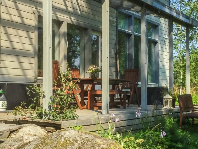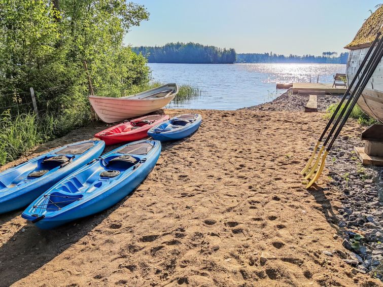147 km north of Helsinki, lake Avusjärvi about 100 m away (length about 2 km, width about 1 km), shallow, first sanded beach, then muddy bottom, a pier, own boat and 4 sit-on-top kayaks.