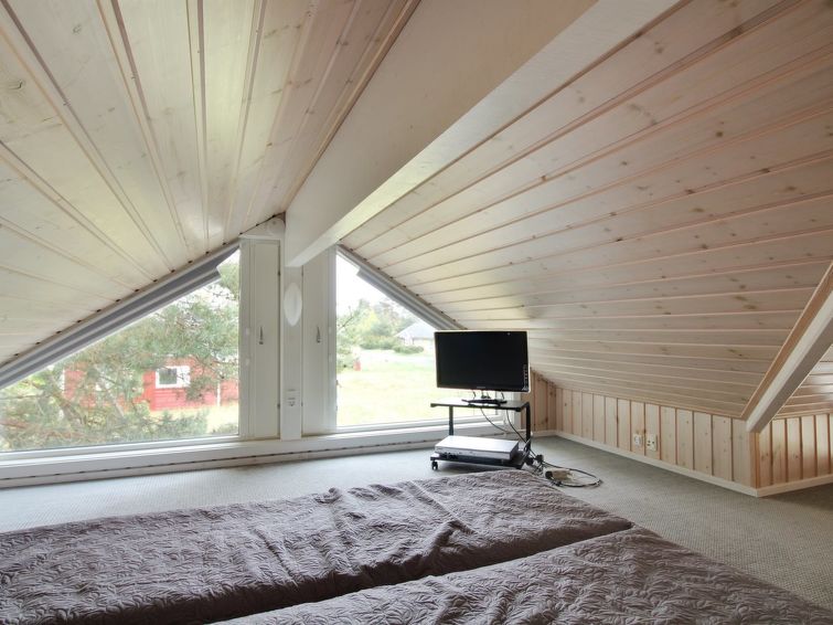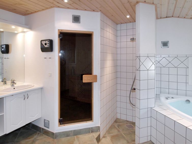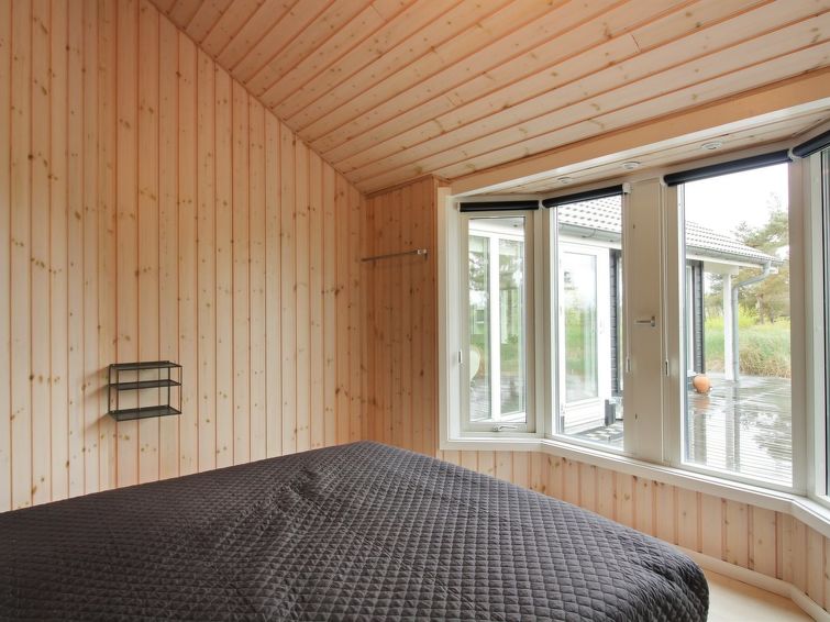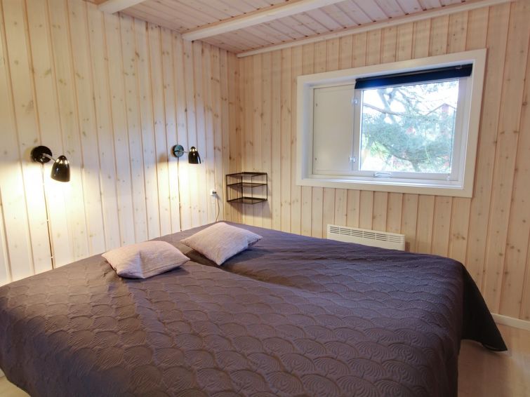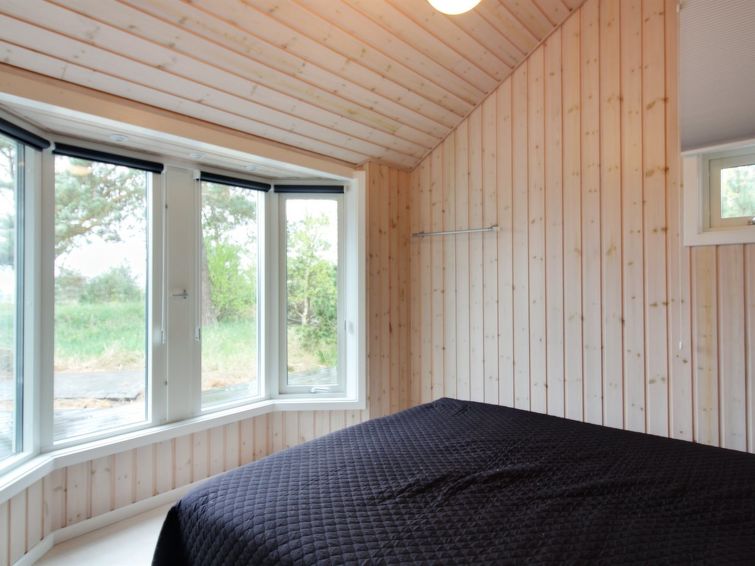 Enmannsbolig, bygget i 2001. 150 m fra sjøen. Privat: uberørt tomt 1'200 m2. Terrasse (100 m2), grill, lekeplass (huske). I huset: badstu, vaskemaskin, tørketrommel. Parkering ved hbrukt. Bilporten. Daglivarehandel 3 km. Golfbane 4.3 km. Eieren godtar ikke noen ungdomsgrupper.