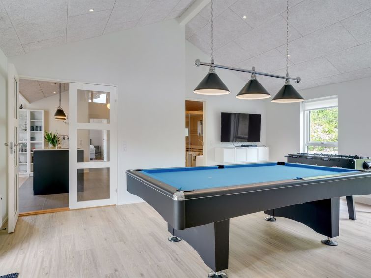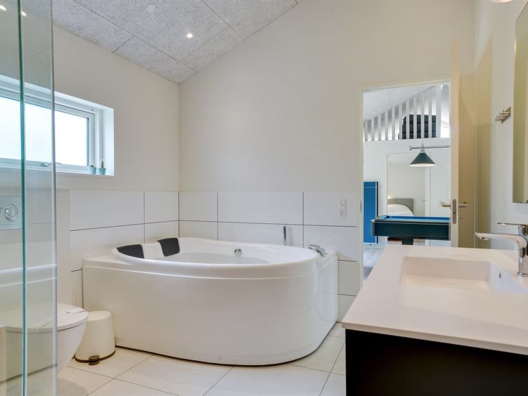"Antonina" - 800m from the sea in NW Jutland", 4 rom hus 159 m2. Passer for 12 voksne + 1 barn. Stue med, TV, radio og DVD. 1 rom med, 1 dobbeltseng. 1 rom med, 1 dobbeltseng. 1 rom med, 1 dobbeltseng og 1 sovemulighet. Åpen galleri, 1 rom med, 1 dobbeltseng og 2 sovemuligheter. Kjøkken (stekeovn, oppvaskmaskin, 4 induksjonskomfyr, mikrobølgeovn, frys). 2 dusjer/WC, boblebad. Terrasse 40 m2, dekt. Fasiliteter: høy barnestol barneseng (ekstra). Internett (trådløs LAN [WLAN]). Vennligst merk: røykfri bolig. Max kjæledyr / hund tillatt 1 kjæledyr / hund tillatt.