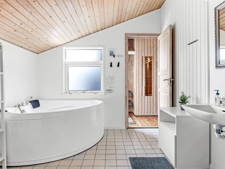 "Arild" - 300m from the sea in NW Jutland", 4 rom hus 110 m2. Passer for 8 voksne + 1 barn. Stue med, TV og radio. 1 rom med, 1 dobbeltseng. 1 rom med, 1 dobbeltseng. 1 rom med 2 senger. 1 rom med, 1 x 2 køysenger. Kjøkken (stekeovn, oppvaskmaskin, 4 induksjonskomfyr, mikrobølgeovn, frys). 2 dusjer/WC, boblebad. Fasiliteter: høy barnestol barneseng (ekstra). Internett (trådløs LAN [WLAN]). Vennligst merk: røykfri bolig. Max kjæledyr / hund tillatt 1 kjæledyr / hund tillatt.