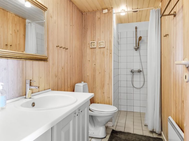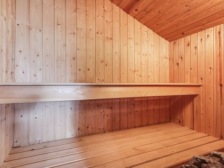 Enmannsbolig, bygget i 1993. 300 m fra sjøen. Privat: uberørt tomt 2'595 m2. Utendørs dusj, grill. I huset: badstu, vaskemaskin, tørketrommel. Parkering ved hbrukt. Bilporten. Daglivarehandel 2 km. Eieren godtar ikke noen ungdomsgrupper.
