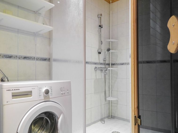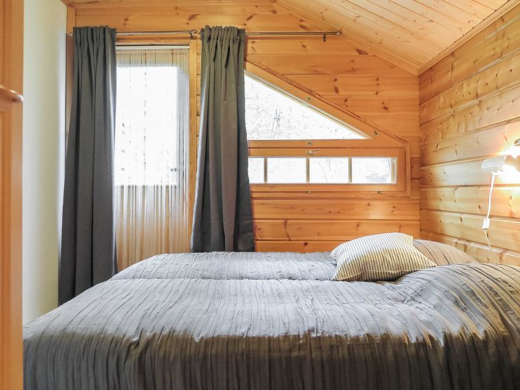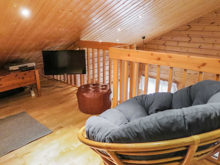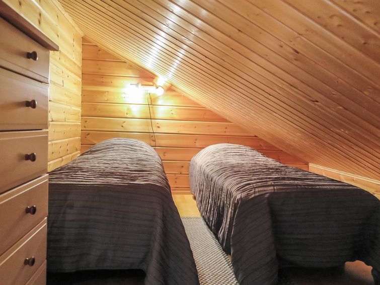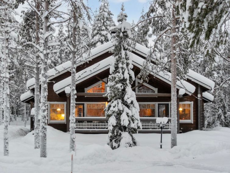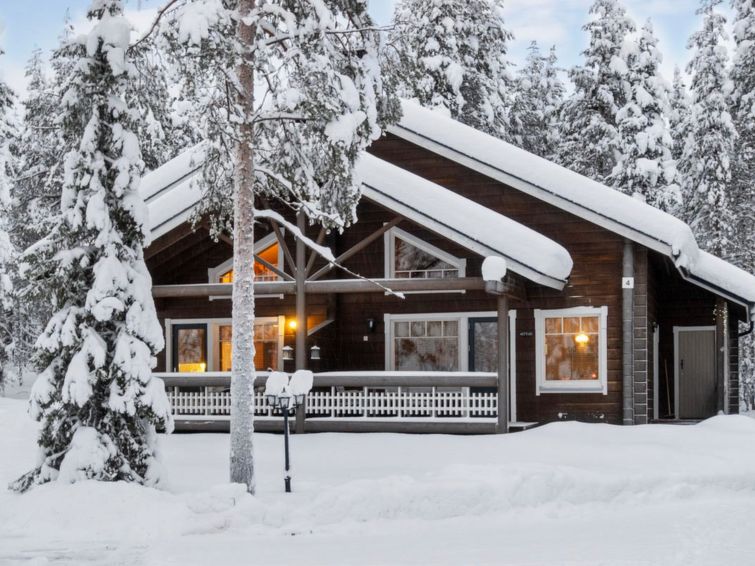 170 km north of Rovaniemi, in Kätkä part of Levi holiday resort. One half (apartment) of log-panelled semi-detached house unit 2002, living room/kitchen, bedroom double bed, bedroom (upstairs) 2 beds, sleeping loft 2 beds, balcony, sauna, washroom, WC, open porch. Equipment also includes internet-Tv, high chair and child’s travel bed.
