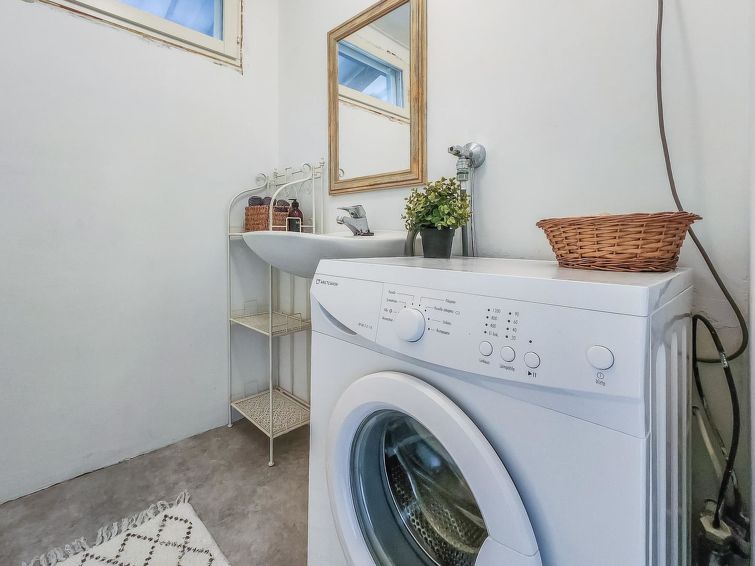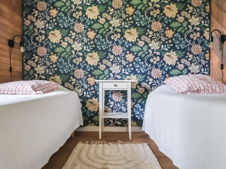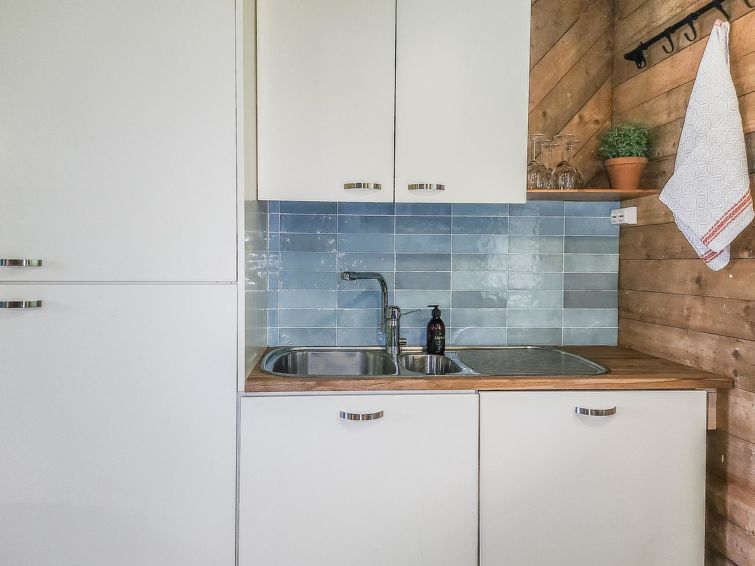 Wooden cottage 1959, renovated 1994, refurbished 2006, living room/ kitchen 2 extra beds, sleeping alcove with door: 2 beds, sleeping alcove with door: 1 bed, small (wood heated) sauna indoors, shower is in sauna, laundry area with sink.