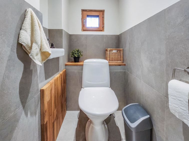 Spacious living room/kitchen, small sleeping alcoves with doors. Cottage's small sauna takes only 1-2 people at a time (top bench 1 Place). Toilet works with pump (the use of toilet differs slightly from standard toilet).