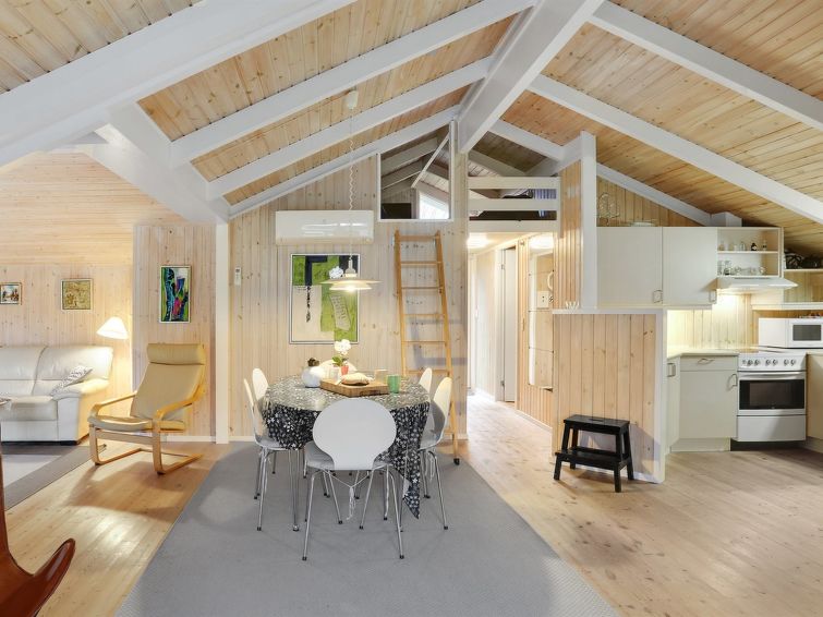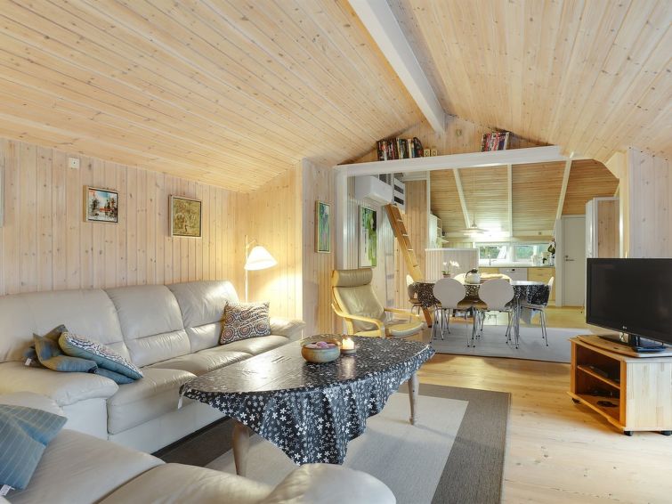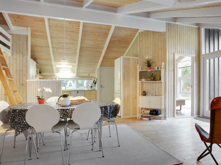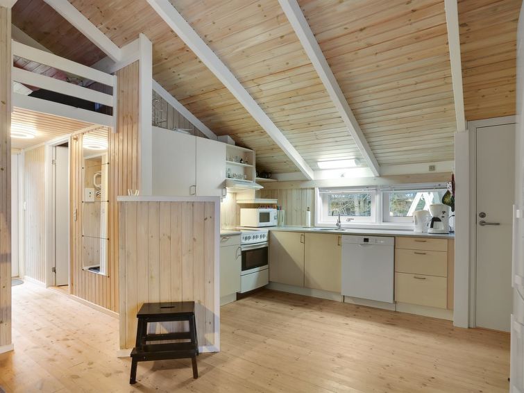 "Arwed" - from the sea in NE Jutland", 3 rom hus 94 m2. Passer for 4 voksne + 4 barn. Stue med, TV, radio, CD-spiller og DVD. 1 rom med 1 seng og 1 x 2 køysenger. 1 rom med, 1 dobbeltseng. Åpen galleri, 1 rom med, 1 dobbeltseng og 2 sovemuligheter. Kjøkken (stekeovn, oppvaskmaskin, 4 keramiske kokeplater, mikrobølgeovn). Dusj/WC. Terrasse 3 m2, dekt. Fasiliteter: høy barnestol barneseng (ekstra). Internett (trådløs LAN [WLAN]). Vennligst merk: røykfri bolig.