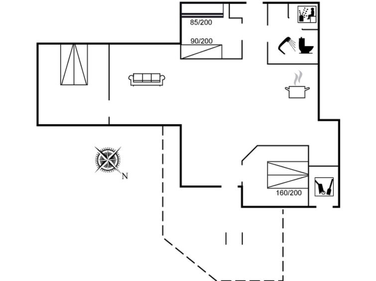 Enmannsbolig, bygget i 1996. 1.3 km fra sjøen. Privat: uberørt tomt 1'200 m2. Terrasse (40 m2), grill (huske). I huset: badstu, trikkpolinje, vaskemaskin. Parkering ved hbrukt. Daglivarehandel 3 km. Golfbane 5 km. Eieren godtar ikke noen ungdomsgrupper.