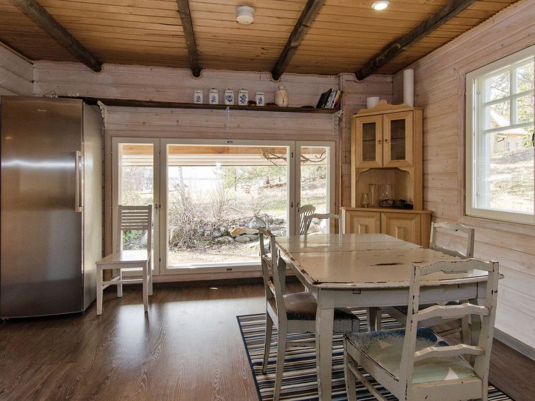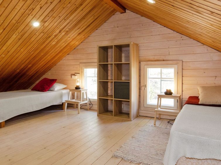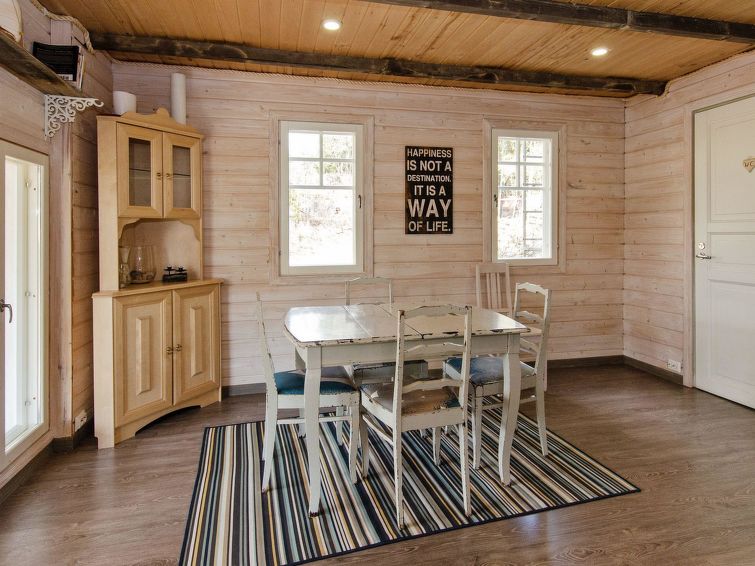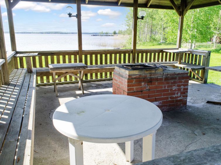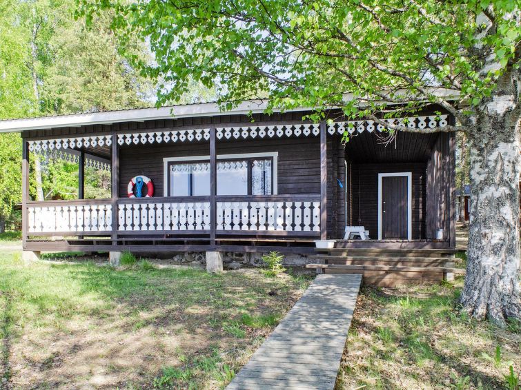 63 km to the south from Joensuu, lake Orivesi 150 m (536 km²), shallow, child-friendly sandy beach, shared beach with guests of the campsite, a boat, and 2 canoes for shared use. The holiday cabin was built in 2013. It has a living room with large dining table and a baking oven. There is plenty of space for cooking in the large kitchen. The spacious loft has 4 beds and mattresses. There are also a WC/washroom and a small terrace. On the beach, there is a sauna and a large covered cooking area for shared use. Wireless internet connection in the main building of the campsite and on its terrace. Breakfast is available in the main building upon prior reservation. In addition, baked goods are available for sale in the main building.