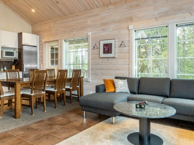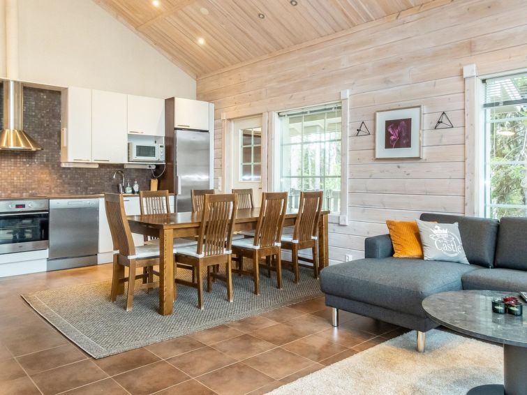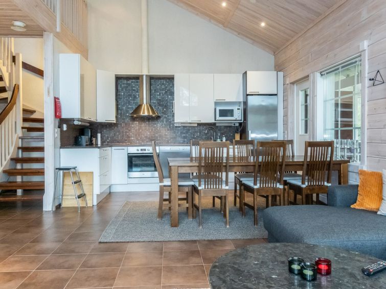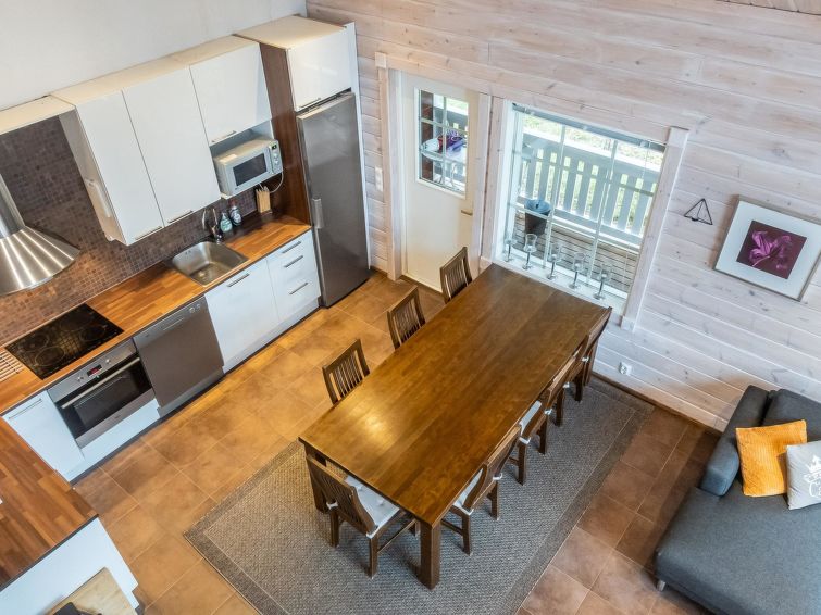 One half (apartment) of semi-detached log house unit 2010 on 2 floors. Located in Levi Tourist Centre.