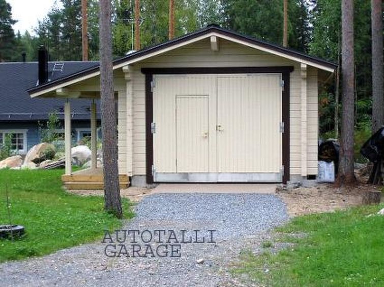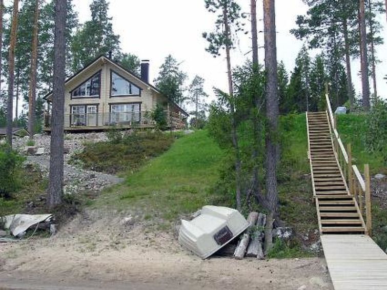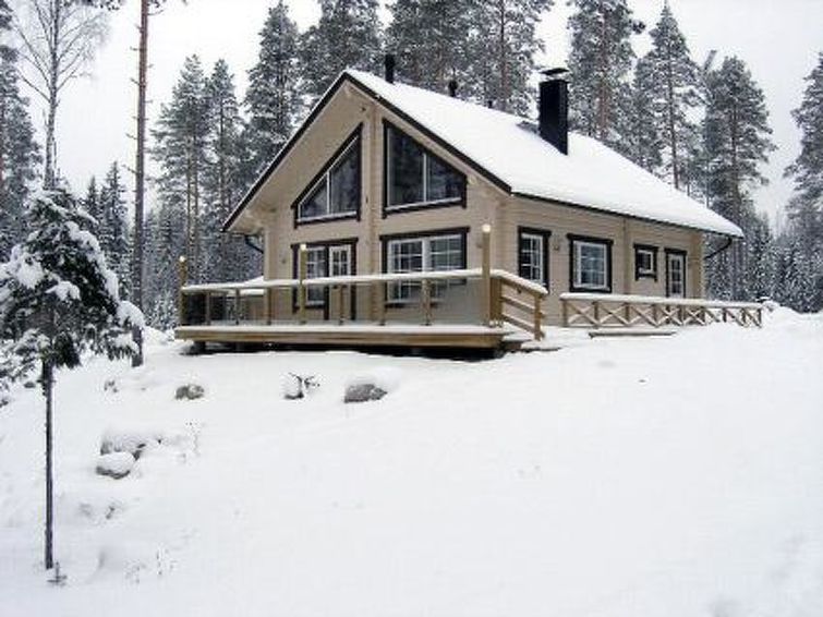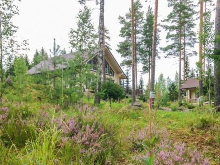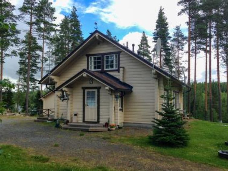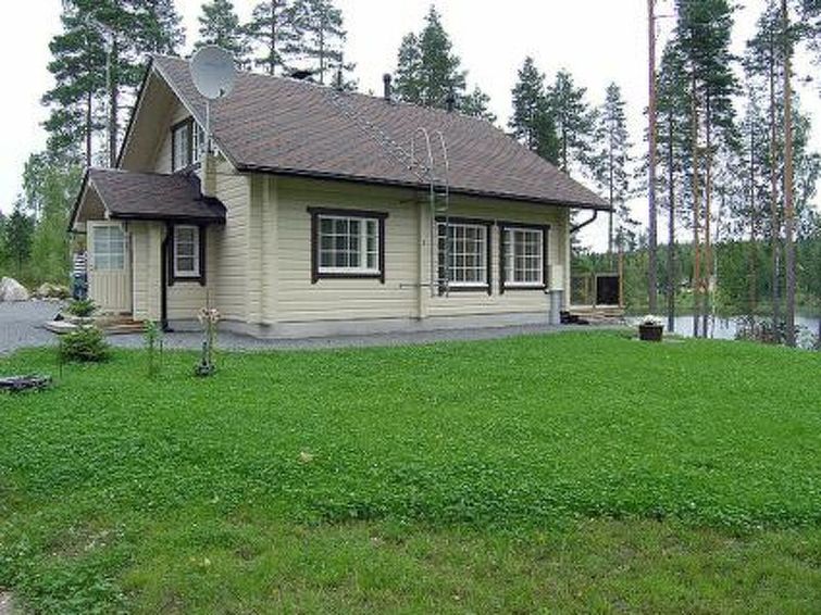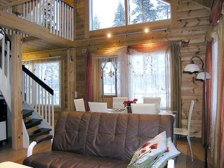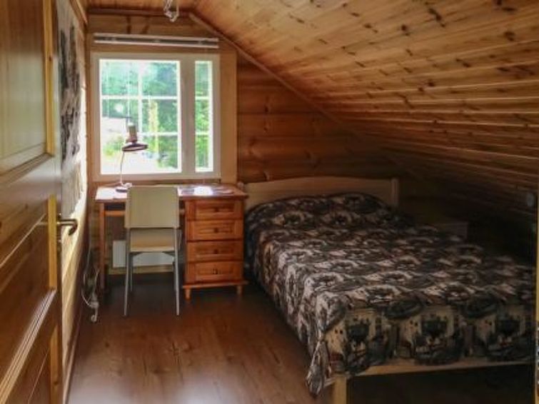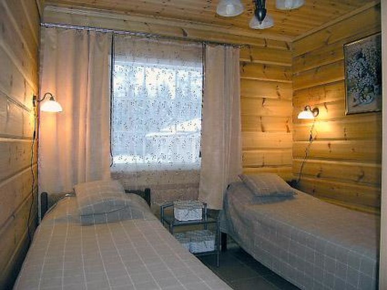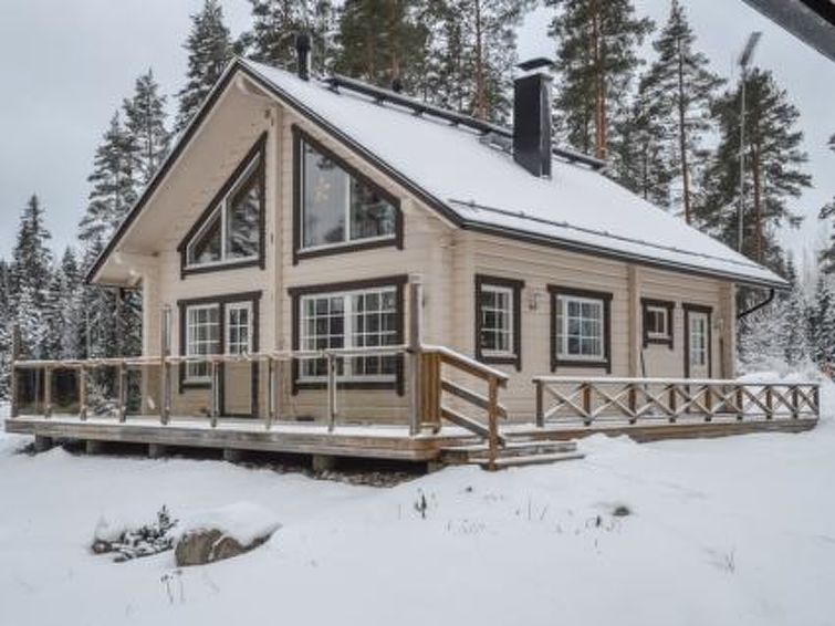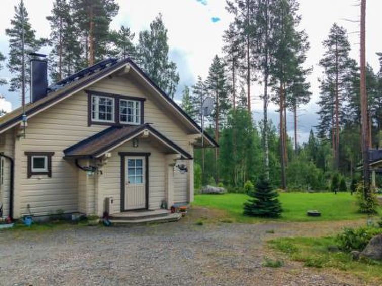 Laminated log house 2009, downstairs bedroom double bed, bedroom 2 beds, living room, kitchen area, washroom, sauna, hall, vestibule, large porch on two sides of house.